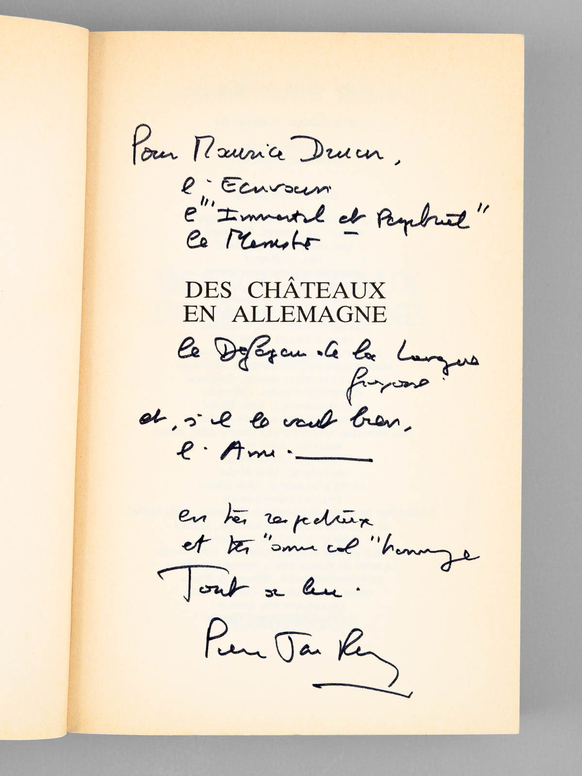 [ Lot de 4 livres dédicacés par l'auteur à Maurice Druon : ] Des Châteaux en Allemagne - Comédies italiennes - Le plus grand peintre vivant est mort - Et Gulliver mourut de sommeil