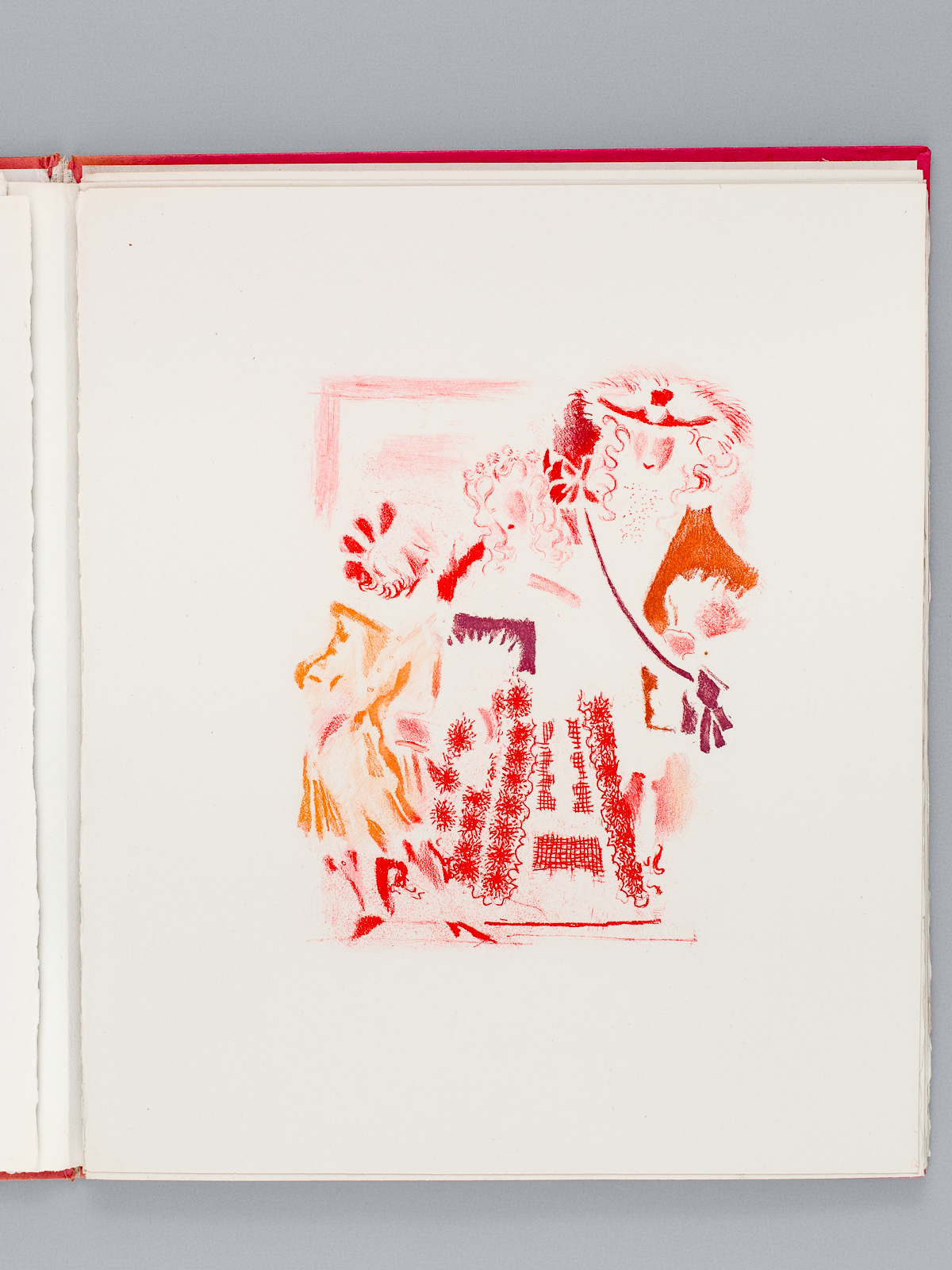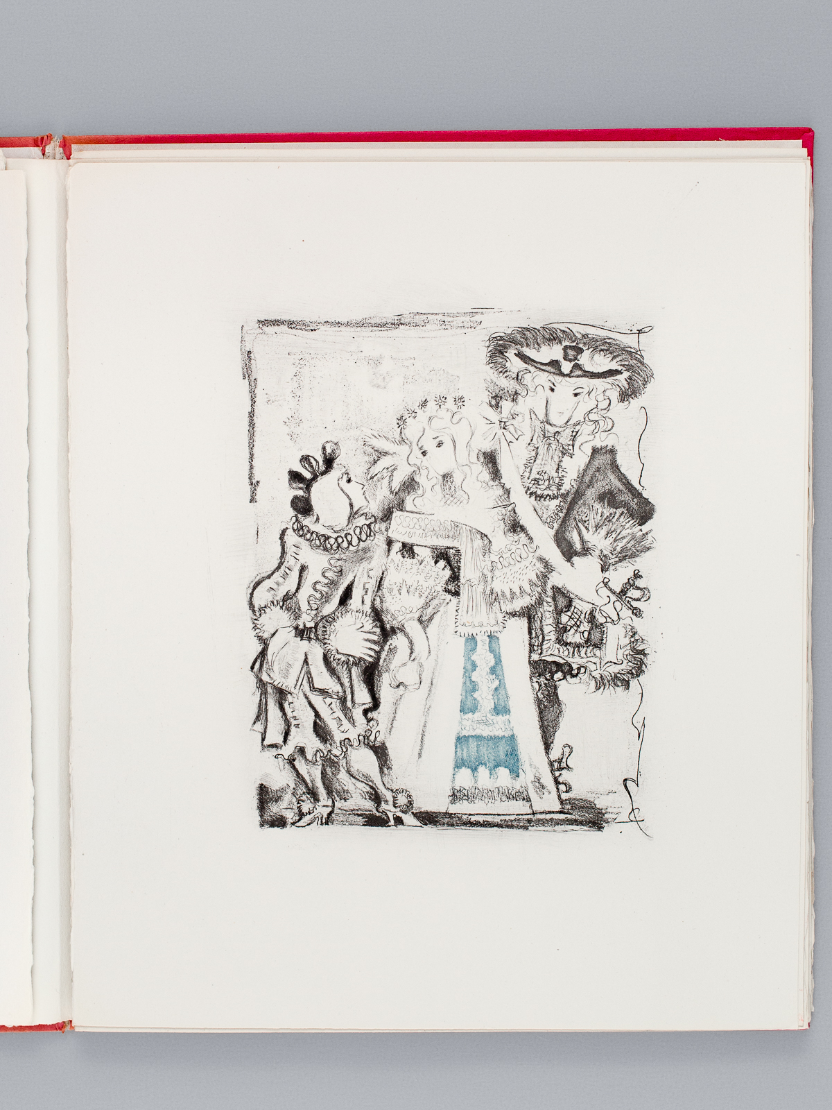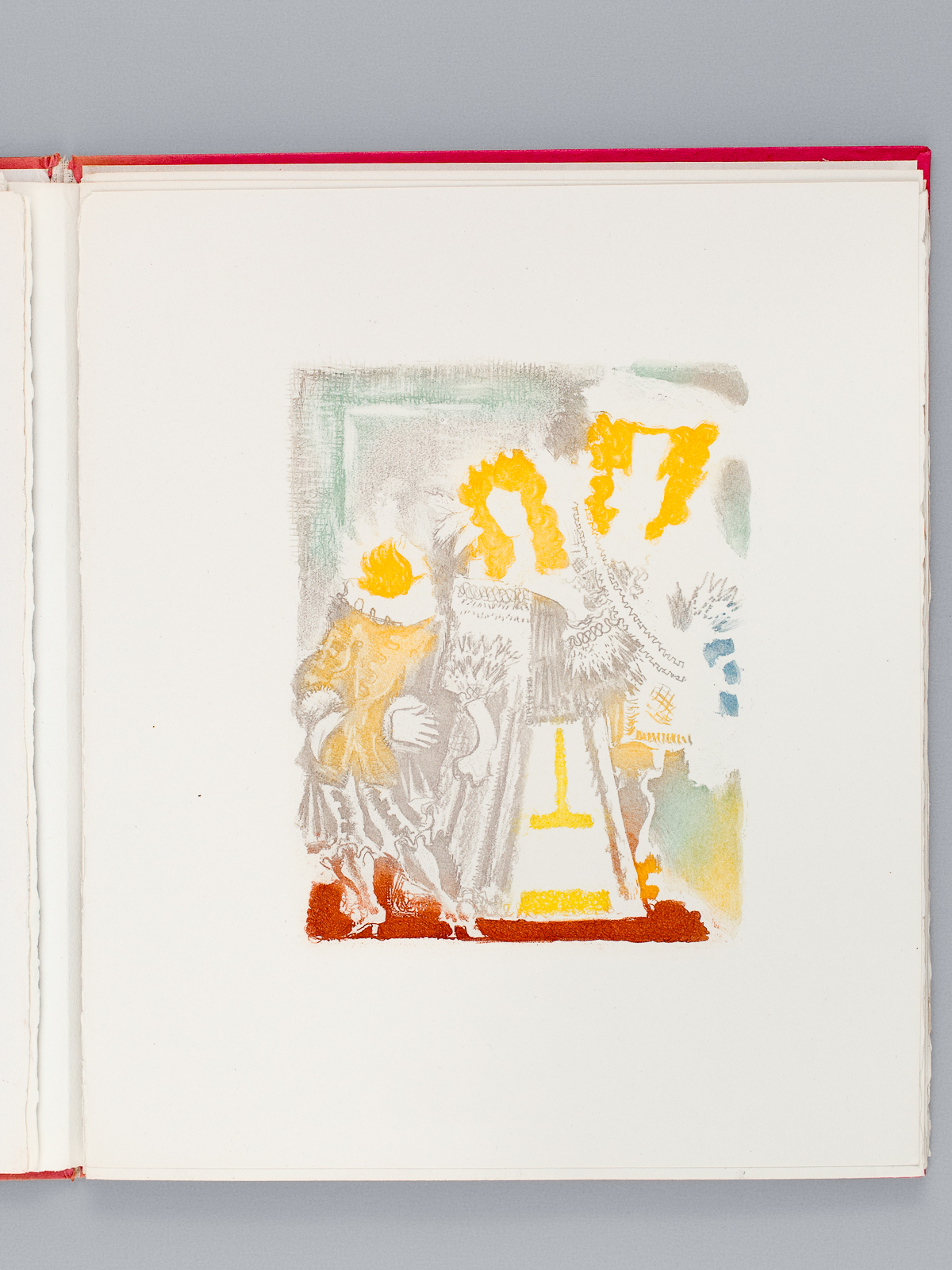 Exemplaire numéro un du tirage à 296 exemplaires, un des 18 exemplaires sur vélin de Rives à la Cuve comprenant une suite des 6 eaux-fortes originales et un état en couleur des 19 cuivres gravés, un des 5 exemplaires comprenant en outre un dessin original et tous les essais ou états, exemplaire nominatif pour M. Alfred Duhamel, 1 vol. in-4 en feuillets sous chemise, chemise cartonnée et étui, Victor Michel, Compagnie Française des Arts Graphiques, Paris, 1946, 186 pp. et 1 f. avec une aquarelle originale signée, un dessin original, 3 suites des illustrations (6 eaux-fortes originales, suite de 13 essais ou états, décomposition en couleurs en 25 planches).