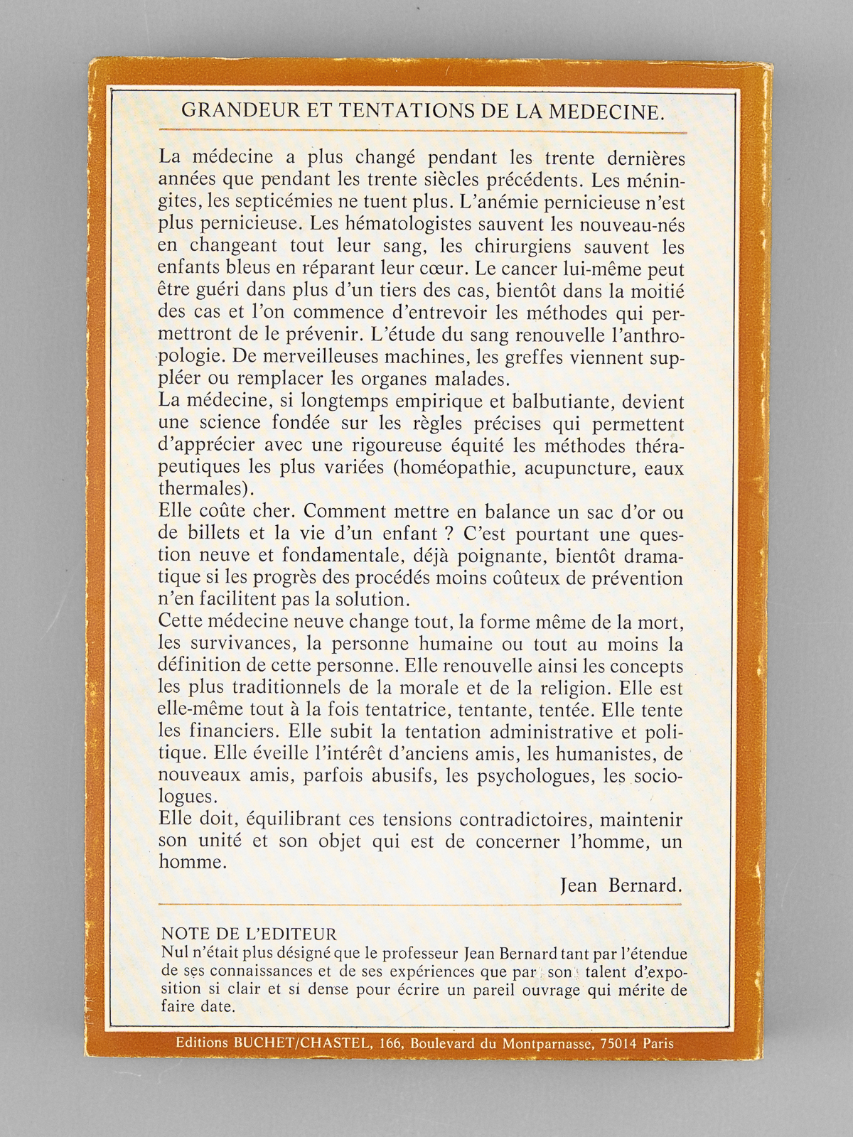 Grandeur et tentations de la médecine [ Livre signé par l'auteur - Envoi à Maurice Druon ]