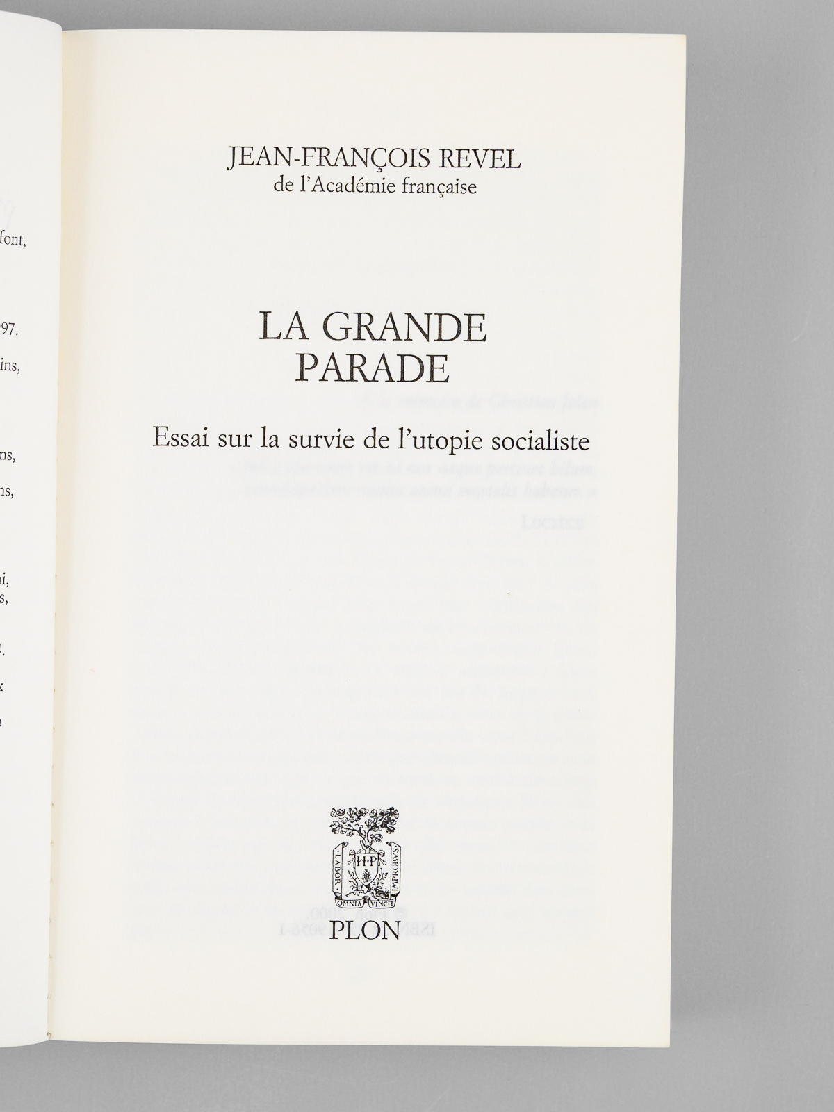 La grande parade - Essai sur la survie de l'utopie socialiste [ Livre signé par l'auteur - Envoi à Maurice Druon ] - Auteur: REVEL, Jean-François (1924-2006) - Année d'édition: 1998