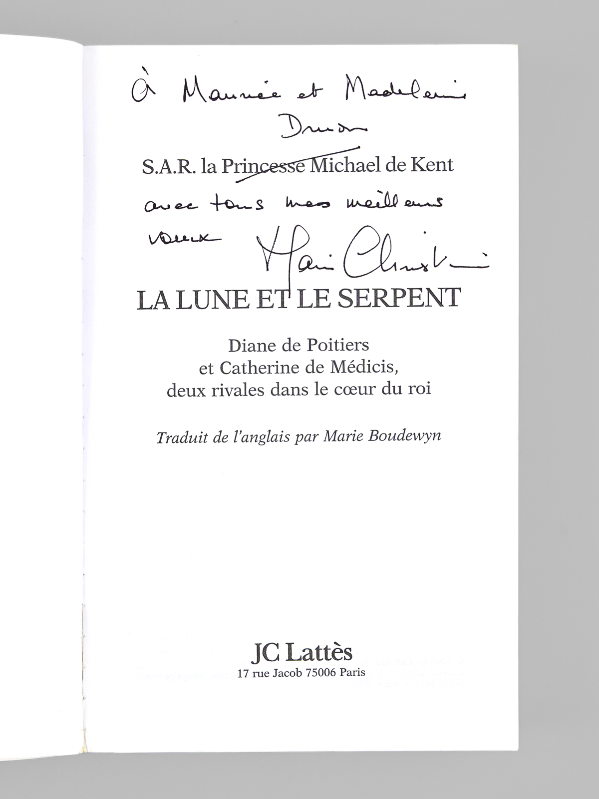 La lune et le serpent. Diane de Poitiers et Catherine de Médicis, deux rivales dans le coeur du roi. [ exemplaire dédicacé à Maurice Druon ] - Auteur: S.A.R. la Princesse Michael de Kent [ née Marie-Christine von Reibnitz ] - Année d'édition: 2005