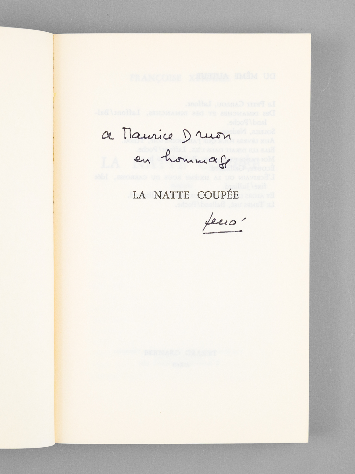 La Natte coupée [ Livre dédicacé par l'auteur à Maurice Druon ]