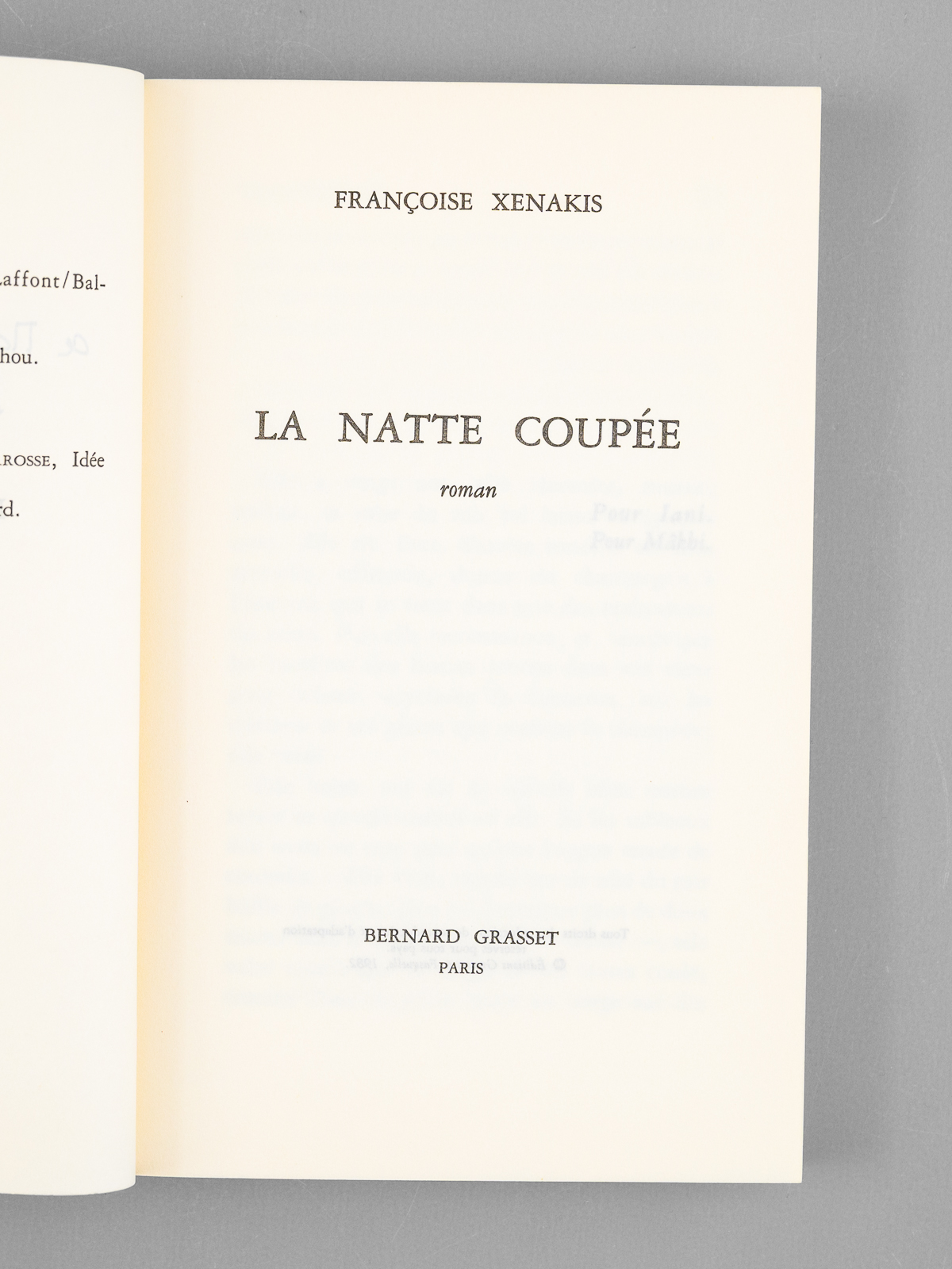 1 vol. in-8 br., Grasset, Paris, 1982, 250 pp. Commentaire : Envoi de Françoise Xenakis : 'A Maurice Druon, en hommage'. Bon état pour cet exemplaire de superbe provenance : de la bibliothèque du grand écrivain Maurice Druon, Secrétaire Perpétuel de l'Académie Française de 1985 à 1999.