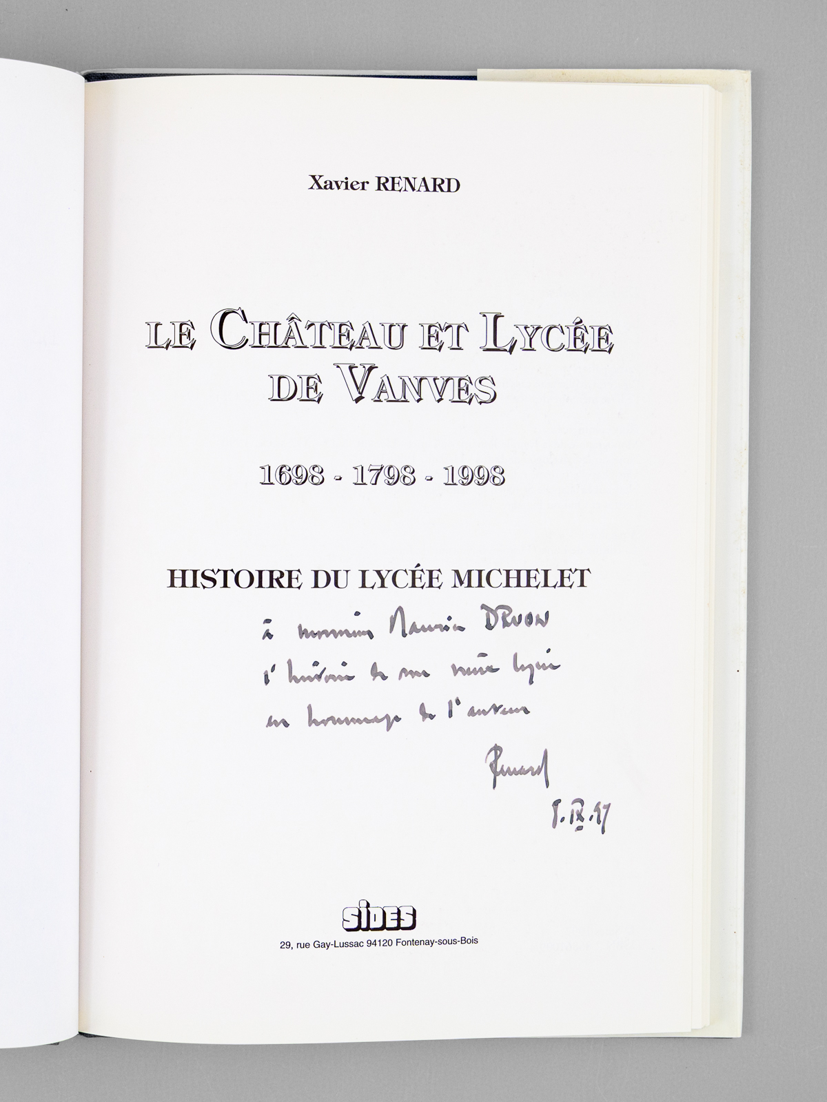 Le Château et Lycée de Vanves 1698- 1798 - 1998. Histoire du Lycée Michelet [ Livre dédicacé par l'auteur à Maurice Druon ] - Auteur: RENARD, Xavier - Année d'édition: 1997
