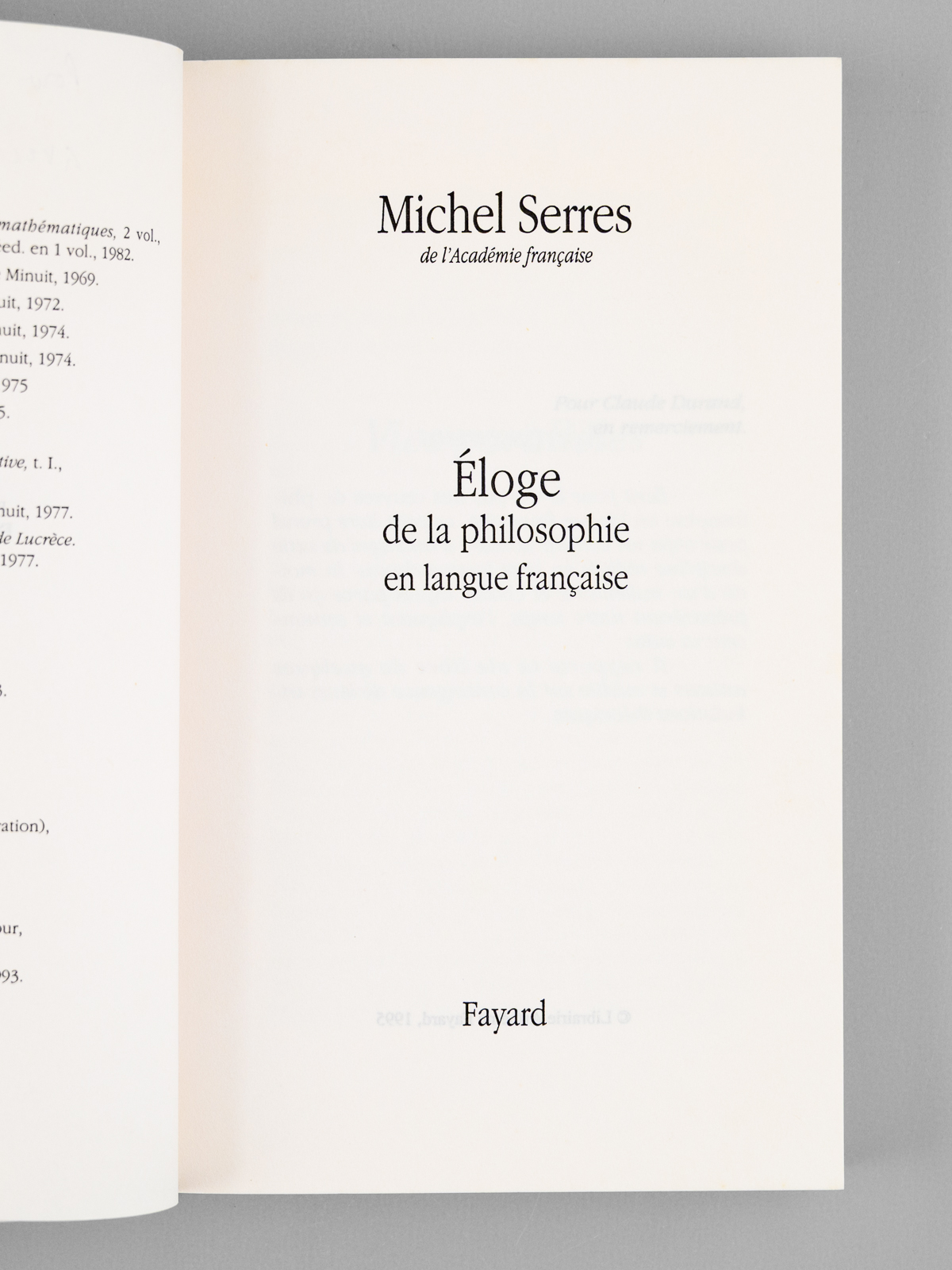 Le contrat naturel - Le tiers instruit - Eloge de la philosophie en langue française [ Livres dédicacé par l'auteur ]