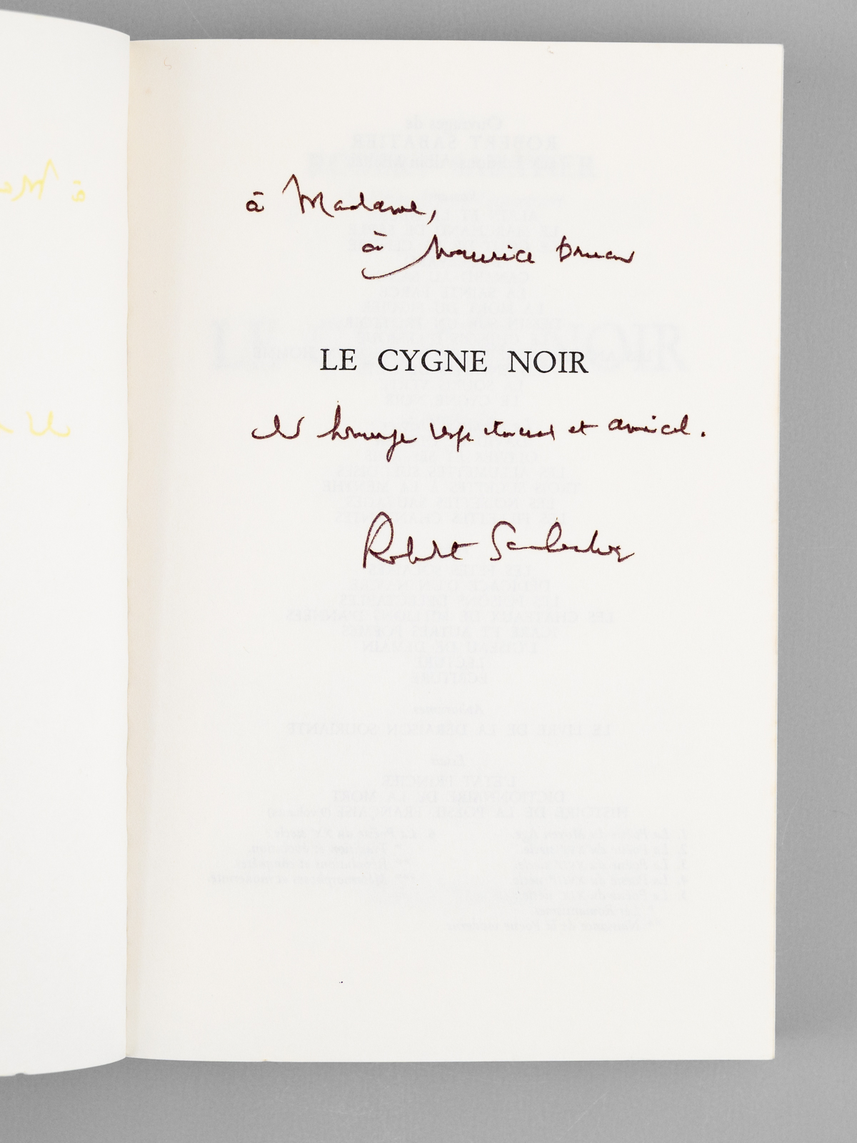 Envoi ms. de l'auteur, 1 vol. in-8 br., Albin Michel, 1995, 237 pp. Commentaire : Bon état. Envois ms. de l'auteur à l'académicien Maurice Druon et à son épouse : 'Pour Madame et pour Monsieur Druon, en respectueux et amical hommage.