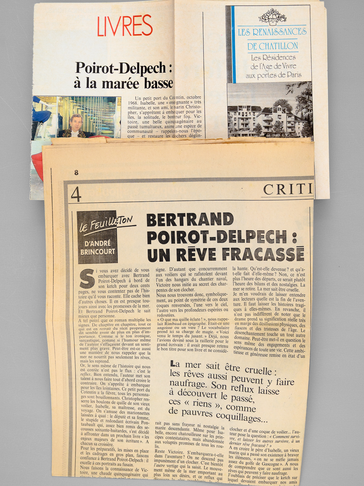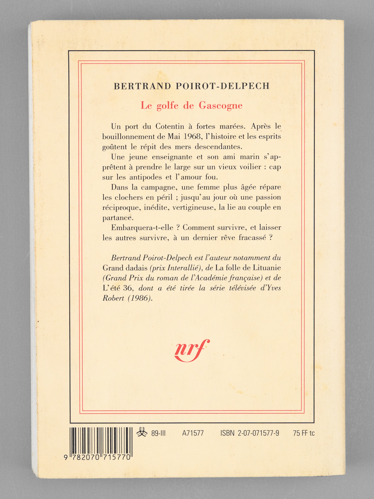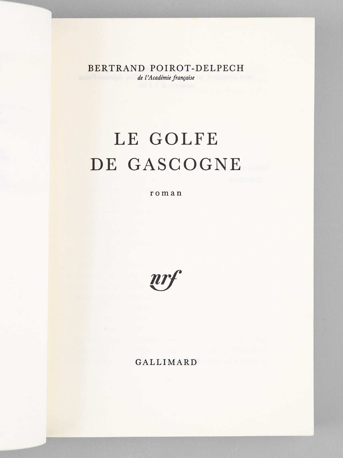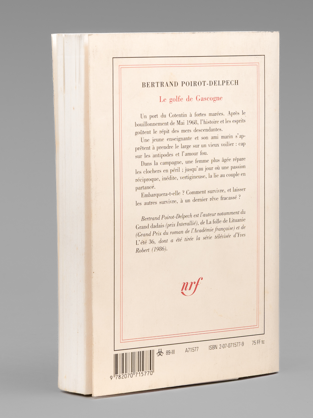 1 vol. in-8 br., NRF, Gallimard, Paris, 1989 Commentaire : Envoi de l'Académicien Bertrand Poirot-Delpech à Maurice Druon : 'A Madeleine et Maurice, en respectueuse et profonde amitié'. Bon état (qq. rouss. en couv.) pour cet exemplaire de provenance prestigieuse : de la bibliothèque du grand écrivain Maurice Druon, Secrétaire Perpétuel de l'Académie Française de 1985 à 1999, auteur des 'Rois Maudits' et co-auteur avec son oncle Joseph Kessel du 'Chant des Partisans'. Conformément à son habitude, Maurice Druon a replié l'angle de 4 feuillets dont la lecture avait plus particulièrement retenu son attention et a signalé à l'encre 4 passage. Il a également inséré 2 coupures de presse (André Brincourt et François Nourissier) évoquant l'ouvrage