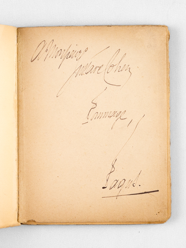Commentaire : Envoi de Fagus 'à Monsieur J. [? ] Marc Cohen, Hommage'. Etat satisfaisant (annotations au stylo en dos, petit mq. angulaire en couv.). Fils de communard, Georges Faillet (1872-1933) dit 'Fagus' devint vite sympathisant de l'Action Française et catholique fervent. Son tempérament anarchiste et sa verve anticonformiste le rendent rebelle à toute catégorisation.