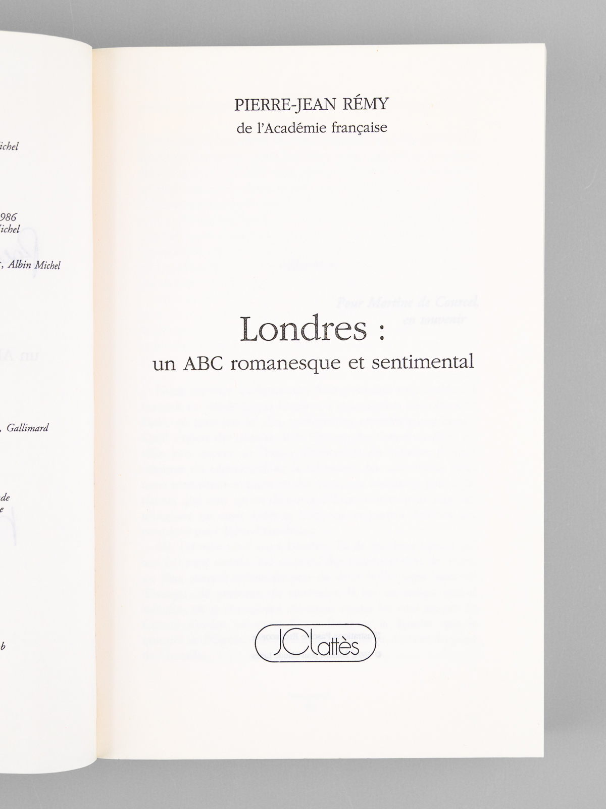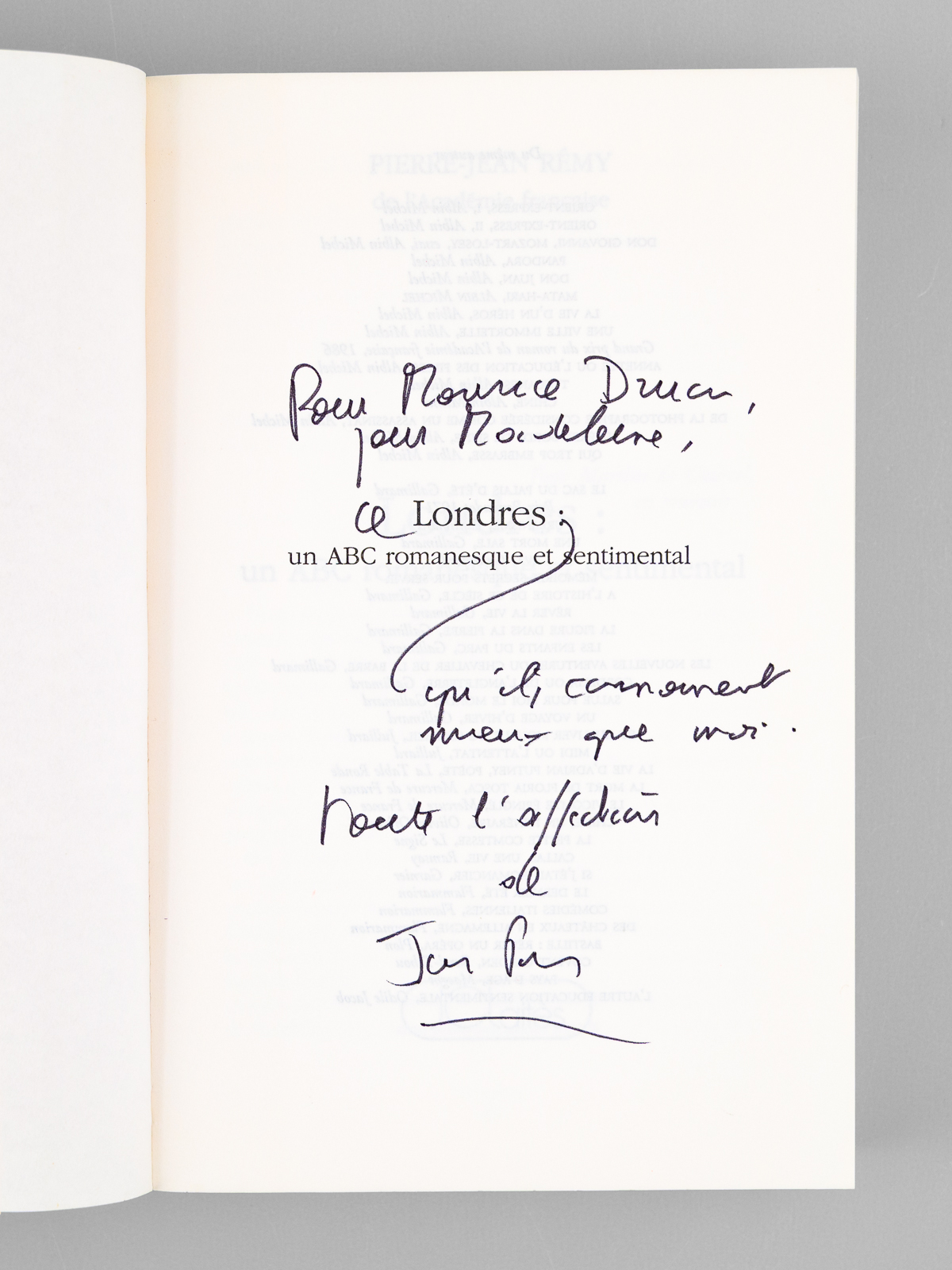Commentaire : Très bel envoi de Pierre-Jean Rémy, 'Pour Maurice Druon, pour Madeleine, ce 'Londres' qu'ils connaissent mieux que moi. Toute l'affection de Jean Pierre'. Bon état pour cet exemplaire de provenance prestigieuse : de la bibliothèque du grand écrivain Maurice Druon, Secrétaire Perpétuel de l'Académie Française de 1985 à 1999.
