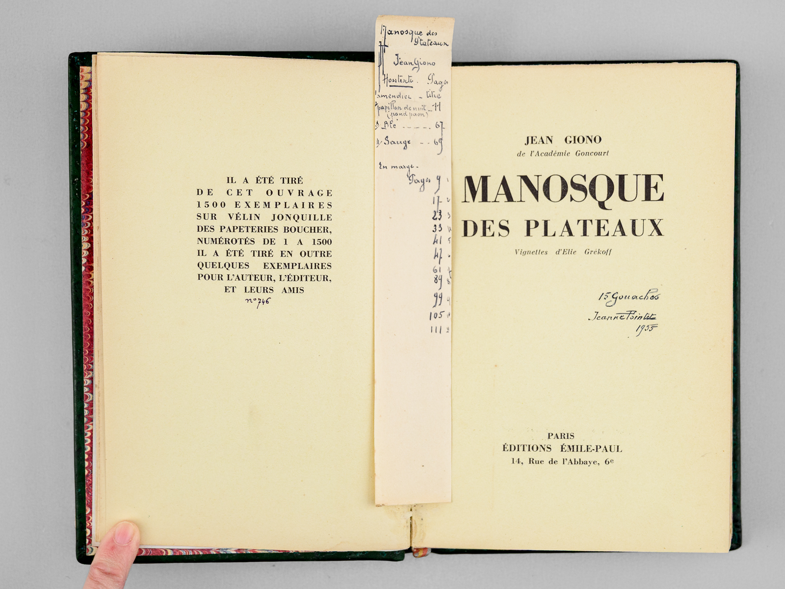 Un des 1500 exemplaires sur vélin jonquille (n° 746), 1 vol. petit in-8 reliure pleine basane verte, dos à 4 nerfs, Editions Emile-Paul, Paris, 1954, 118 pp.