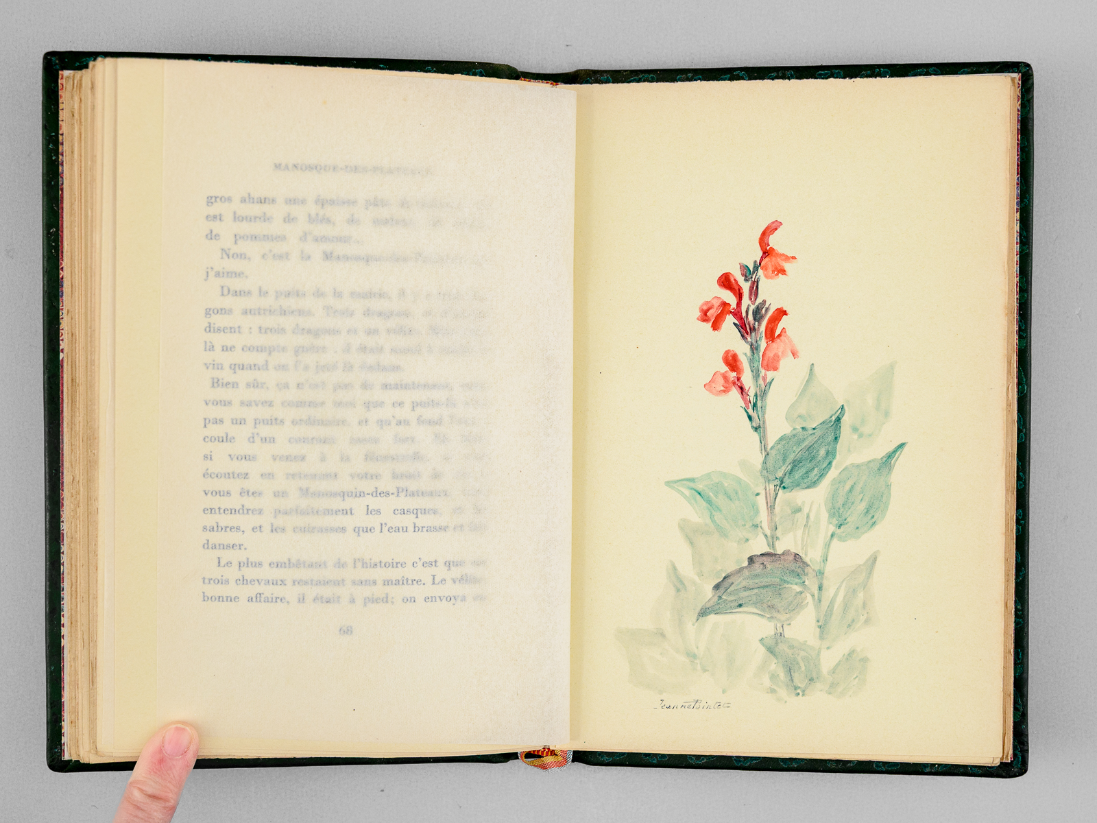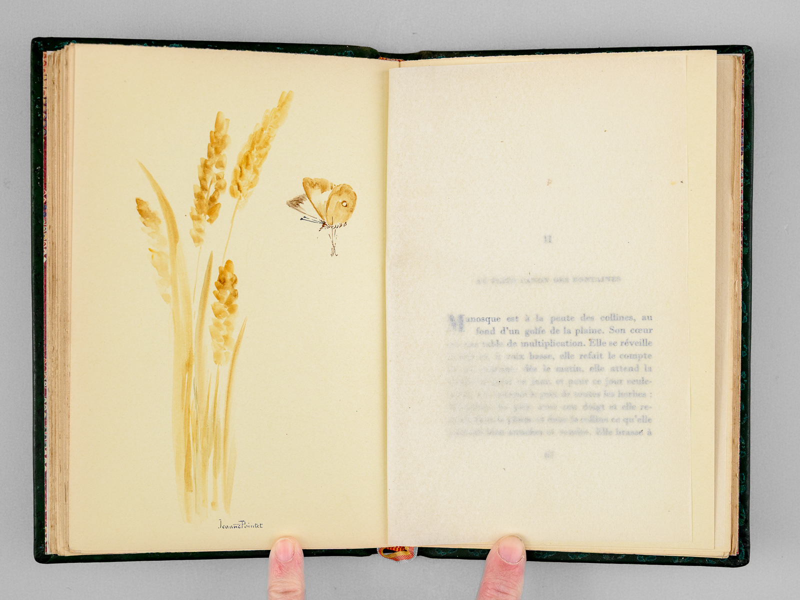 Commentaire : Exemplaire unique, enrichi de 15 gouaches originales de la peintre naturaliste et orientaliste Jeanne Pointet (1904-1989), dont 4 hors texte (amandier, papillon de nuit grand paon, blé, sauge), les autres gouaches en marge dans le texte. Bon exemplaire (l'artiste a précisé sur un signet inséré le détail de ses compositions).