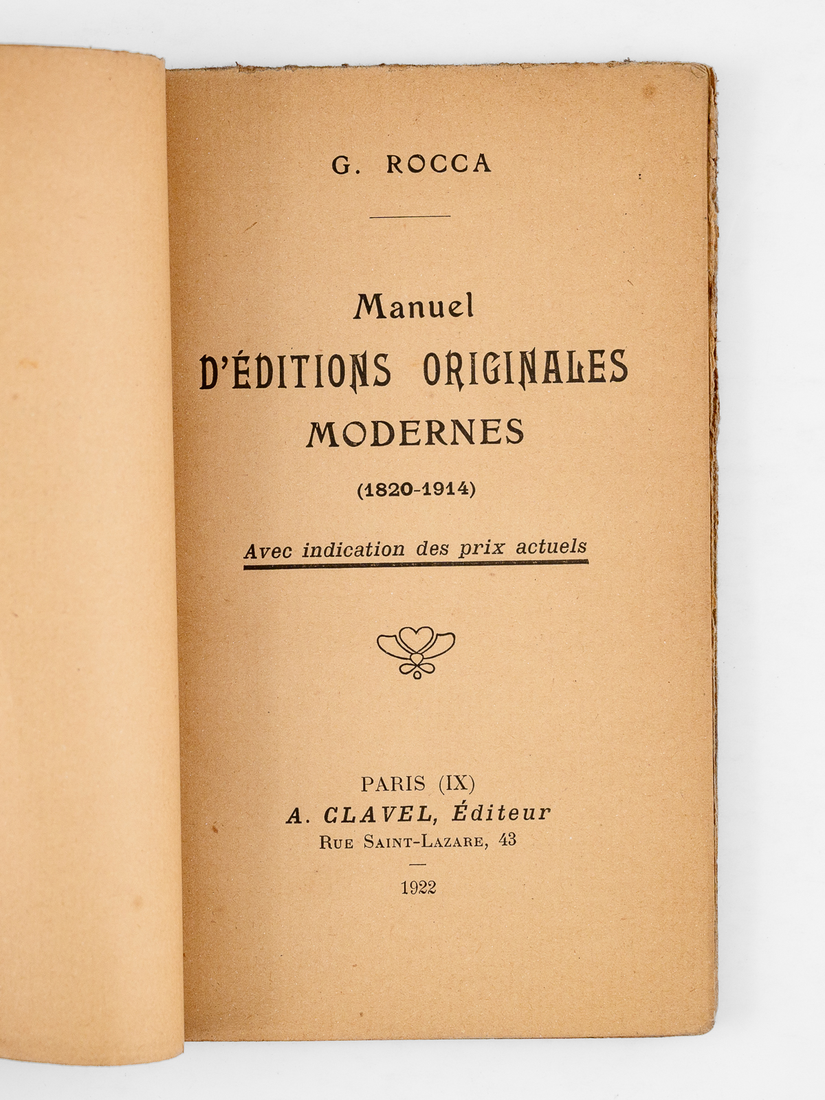 Manuel d'éditions originales modernes (1820-1914) Avec indication des prix actuels [ Edition originale - Livre dédicacé par l'auteur ]