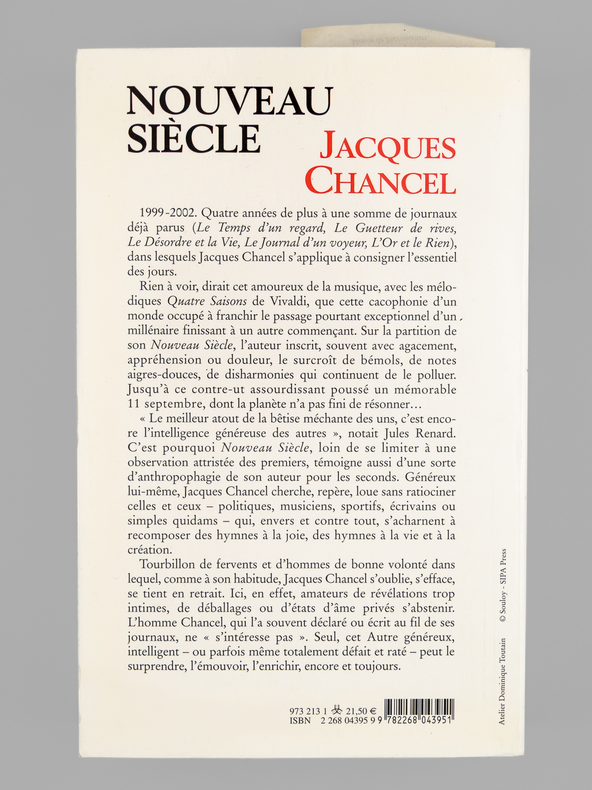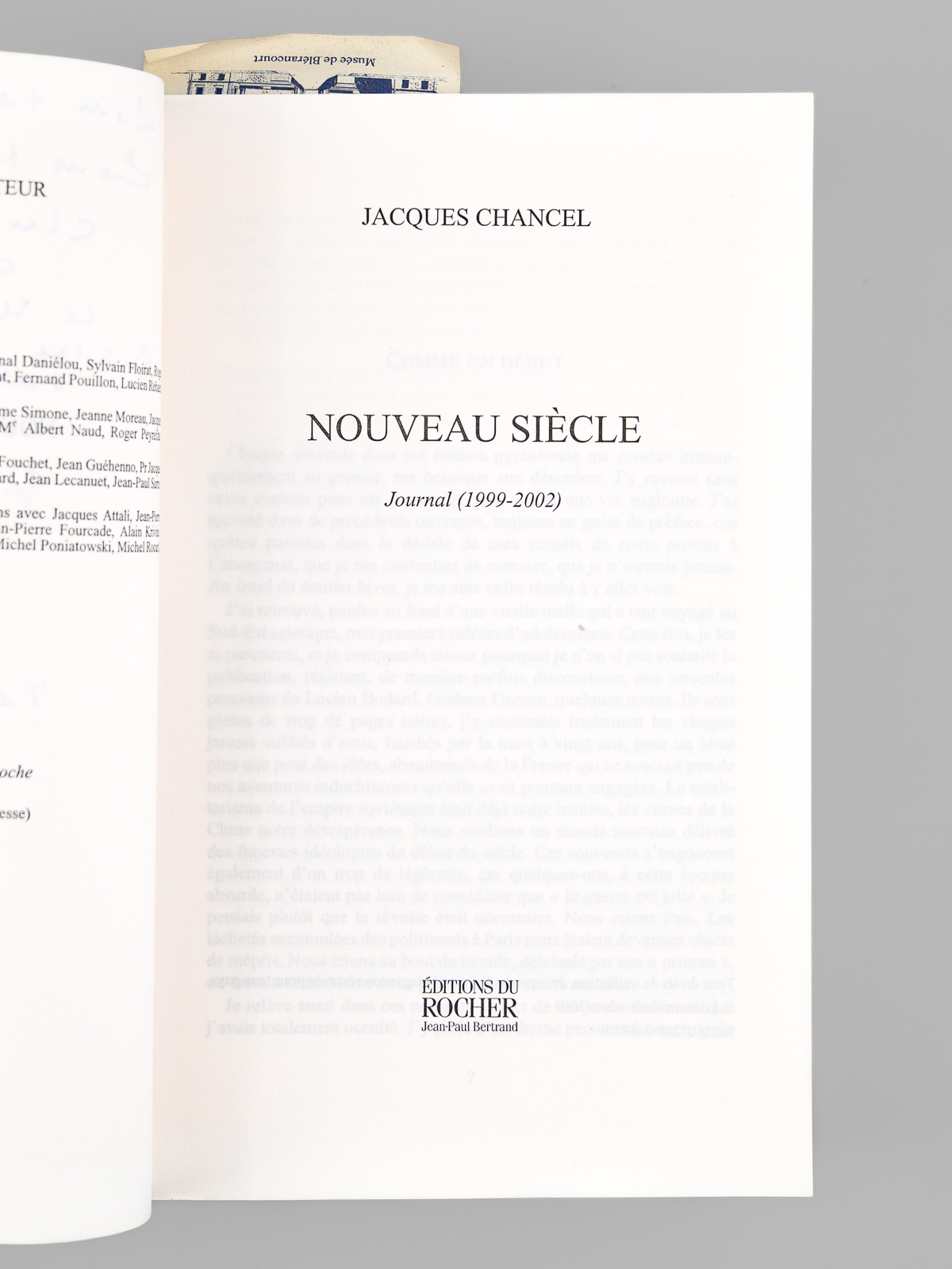 Nouveau Siècle - Journal 1999-2002 [ exemplaire dédicacé à Maurice Druon ]