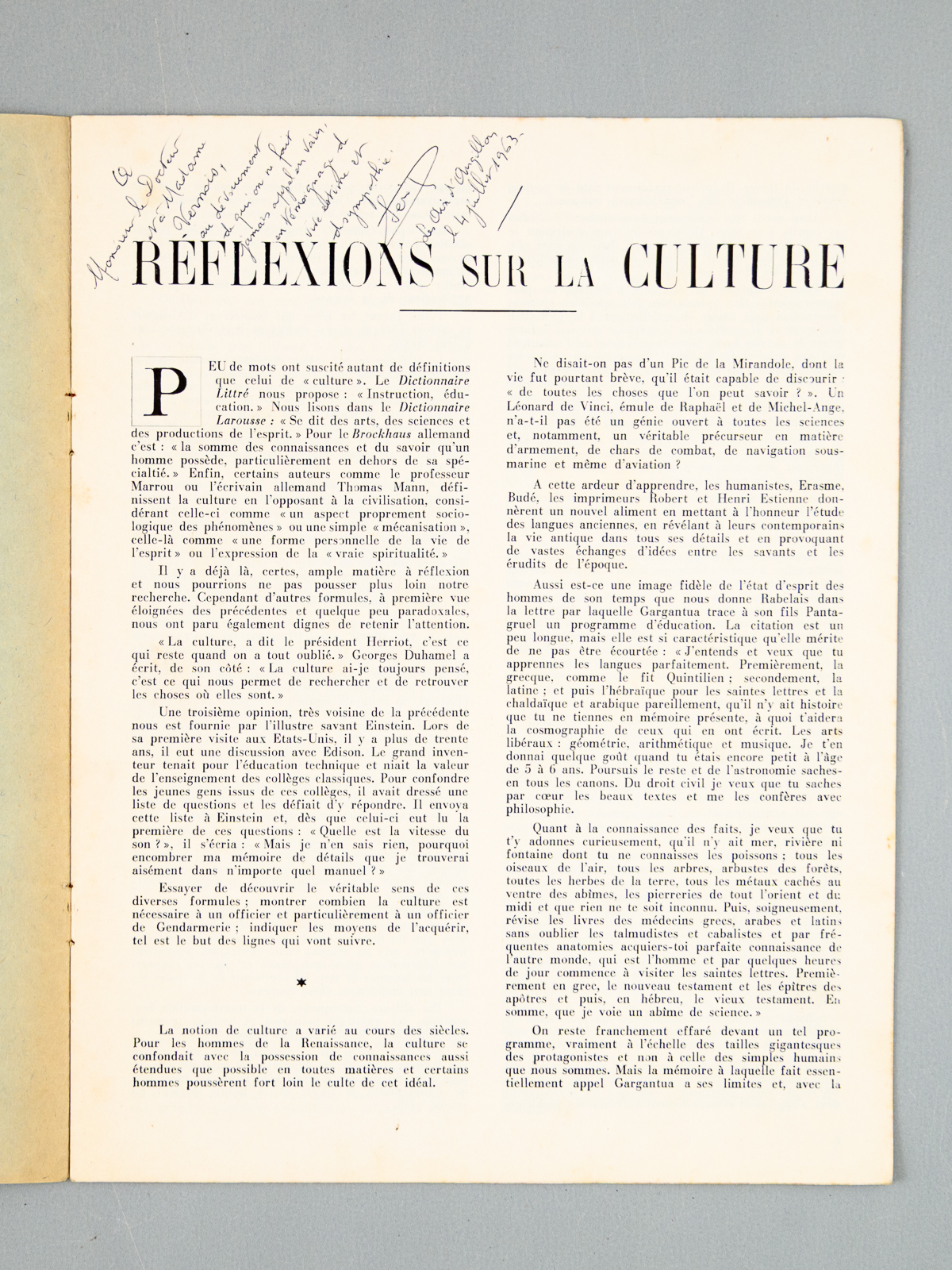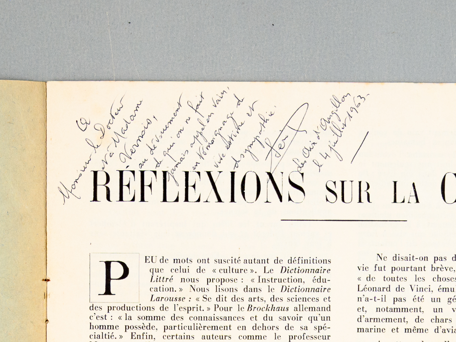 Réflexions sur la Culture [ exemplaire signé par l'auteur ]