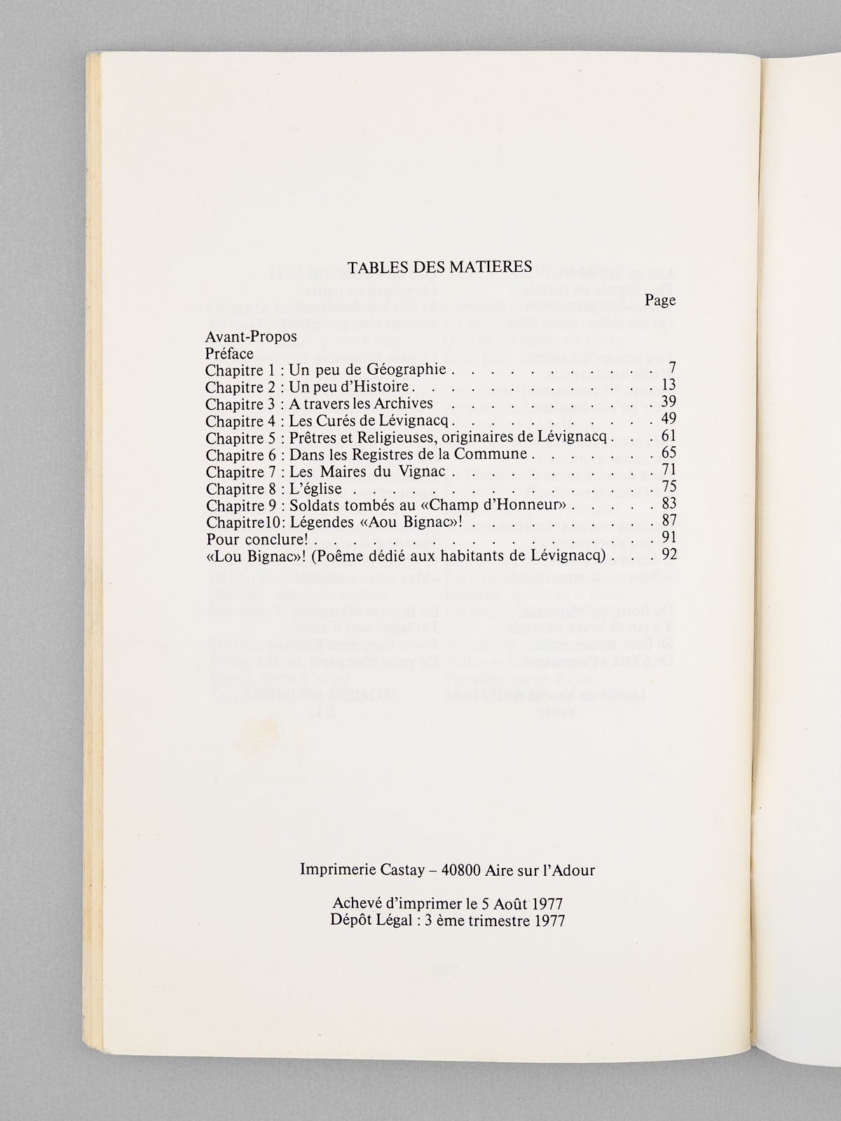 1 vol. in-8 br., Imprimerie Castay, Aire-sur-l'Adour, 1977, 93 pp.