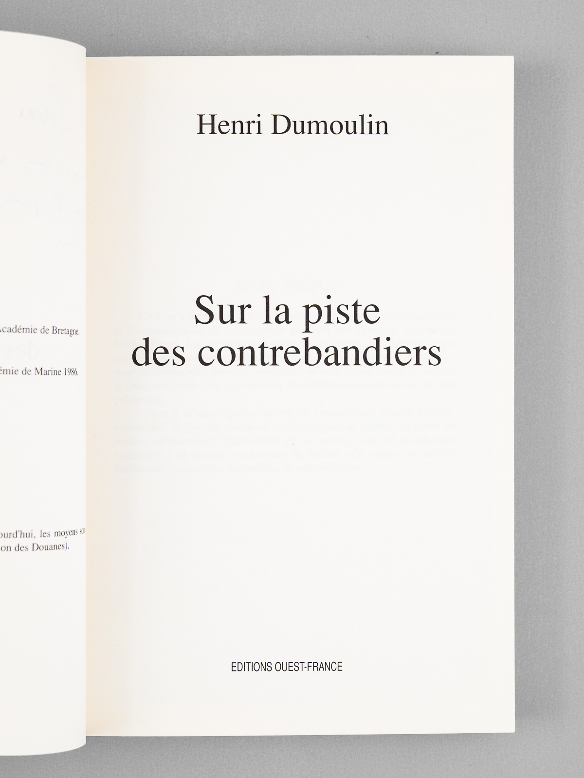 1 vol. in-8 br., éditions Ouest-France, 1989, 205 pp. Commentaire : Très bon état pour cet exemplaire dédicacé à un journaliste : 'A Pierre C..., avec mes amitiés et ma gratitude pour la promotion faite à mes précédents livres.'