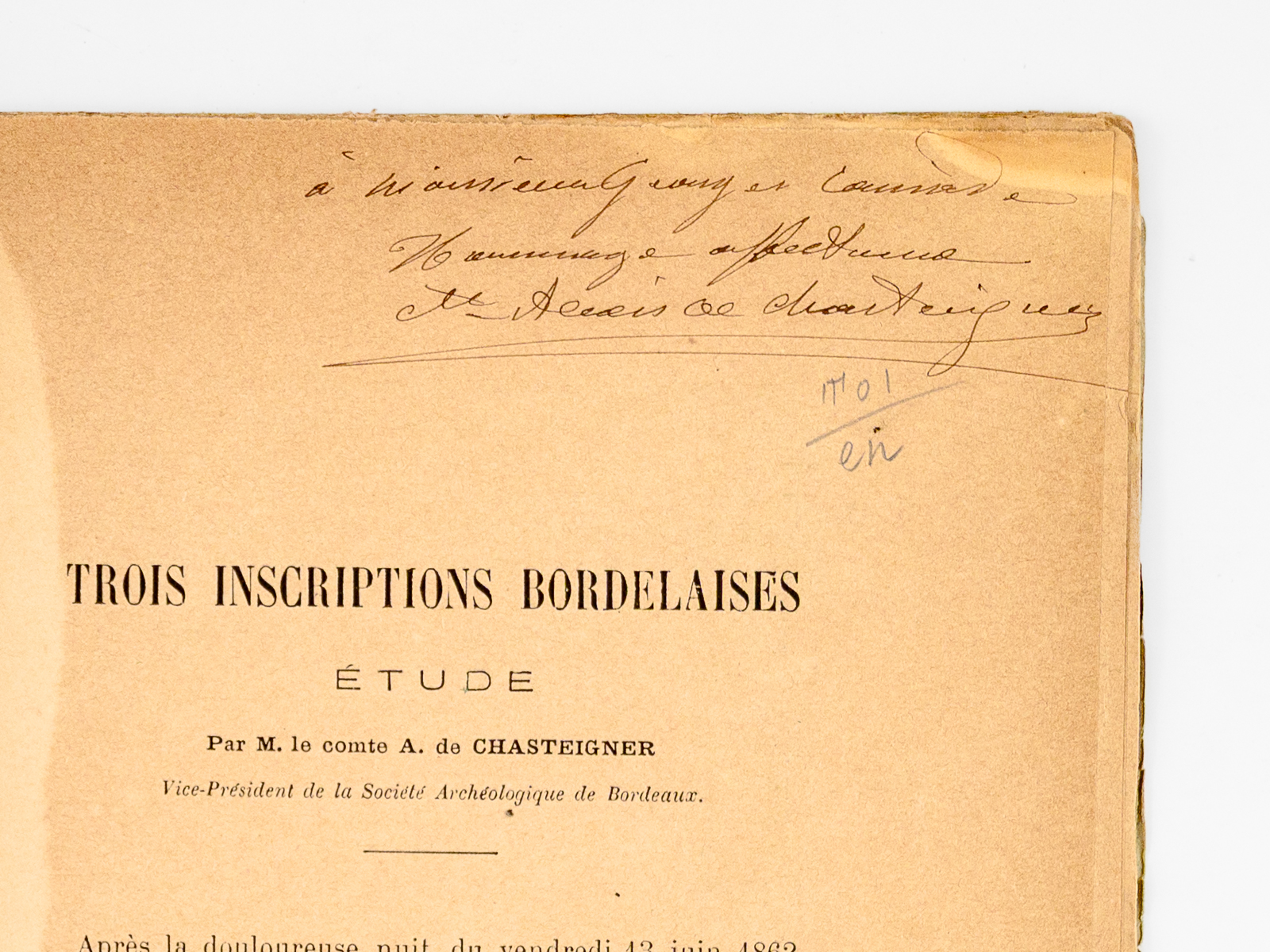 Trois inscriptions bordelaises. Etude. [ Livre dédicacé par l'auteur ]