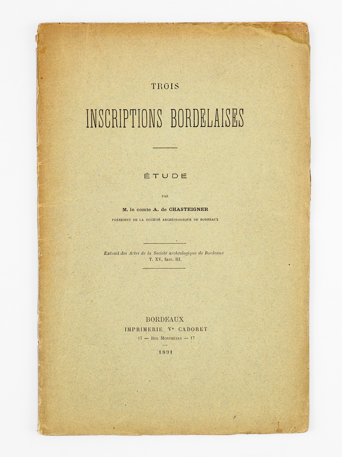 Trois inscriptions bordelaises. Etude. [ Livre dédicacé par l'auteur ]photo n°2 : Trois inscriptions bordelaises. Etude. [ Livre dédicacé par l'auteur ]photo n°3 : Trois inscriptions bordelaises. Etude. [ Livre dédicacé par l'auteur ]photo n°4 : Trois inscriptions bordelaises. Etude. [ Livre dédicacé par l'auteur ]photo n°5 : Trois inscriptions bordelaises. Etude. [ Livre dédicacé par l'auteur ]photo n°6 : Trois inscriptions bordelaises. Etude. [ Livre dédicacé par l'auteur ]photo n°7 : Trois inscriptions bordelaises. Etude. [ Livre dédicacé par l'auteur ]photo n°8 : Trois inscriptions bordelaises. Etude. [ Livre dédicacé par l'auteur ]