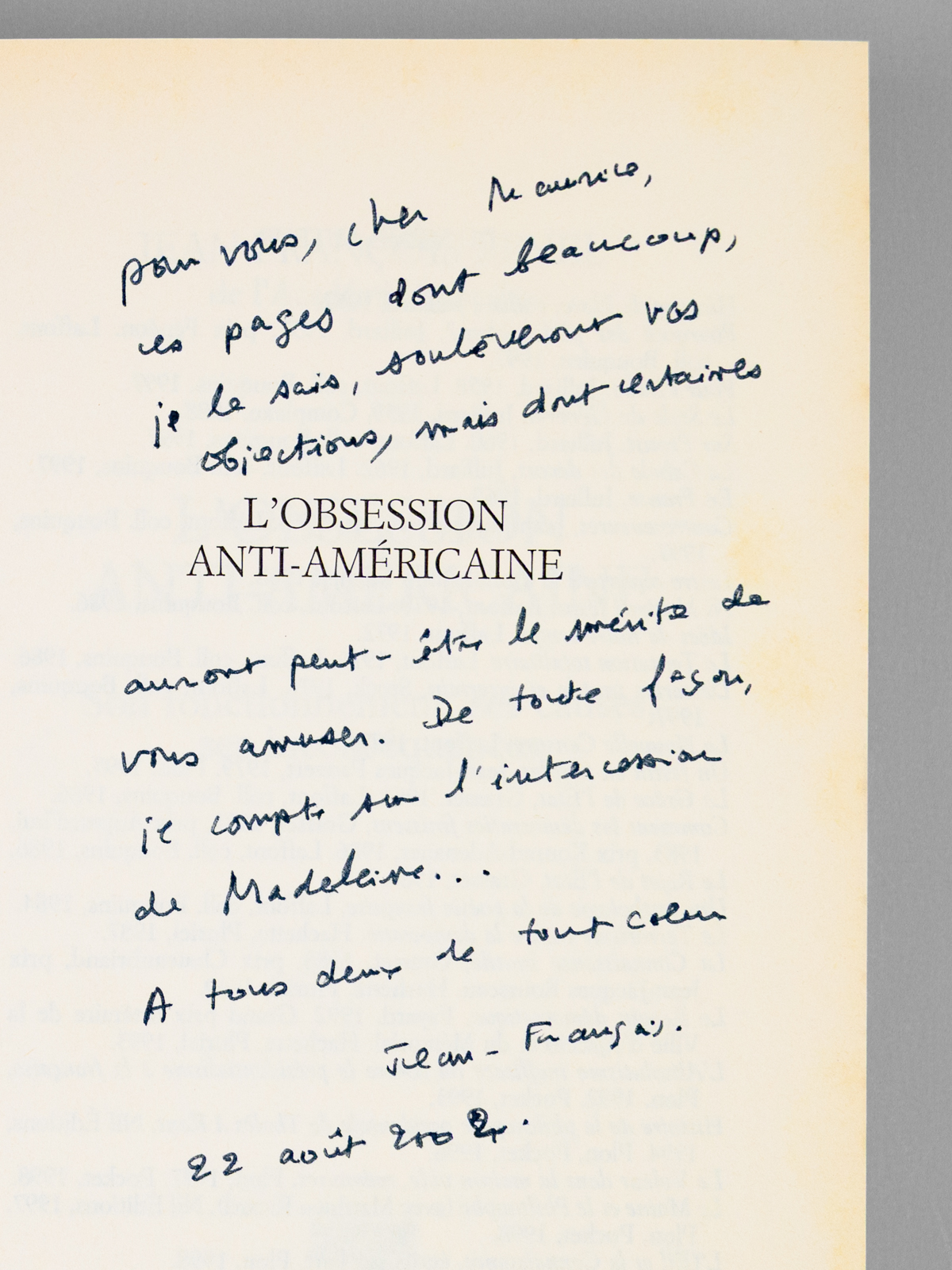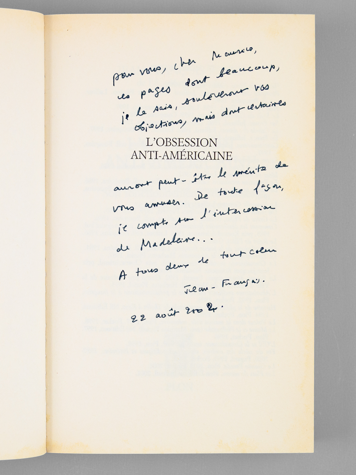 L'obsession anti-américaine - Son fonctionnement, ses causes, ses inconséquences   [ Livre signé par l'auteur - Envoi à Maurice Druon ]photo n°2 : L'obsession anti-américaine - Son fonctionnement, ses causes, ses inconséquences   [ Livre signé par l'auteur - Envoi à Maurice Druon ]photo n°3 : L'obsession anti-américaine - Son fonctionnement, ses causes, ses inconséquences   [ Livre signé par l'auteur - Envoi à Maurice Druon ]photo n°4 : L'obsession anti-américaine - Son fonctionnement, ses causes, ses inconséquences   [ Livre signé par l'auteur - Envoi à Maurice Druon ]photo n°5 : L'obsession anti-américaine - Son fonctionnement, ses causes, ses inconséquences   [ Livre signé par l'auteur - Envoi à Maurice Druon ]photo n°6 : L'obsession anti-américaine - Son fonctionnement, ses causes, ses inconséquences   [ Livre signé par l'auteur - Envoi à Maurice Druon ]photo n°7 : L'obsession anti-américaine - Son fonctionnement, ses causes, ses inconséquences   [ Livre signé par l'auteur - Envoi à Maurice Druon ]photo n°8 : L'obsession anti-américaine - Son fonctionnement, ses causes, ses inconséquences   [ Livre signé par l'auteur - Envoi à Maurice Druon ]photo n°9 : L'obsession anti-américaine - Son fonctionnement, ses causes, ses inconséquences   [ Livre signé par l'auteur - Envoi à Maurice Druon ]photo n°10 : L'obsession anti-américaine - Son fonctionnement, ses causes, ses inconséquences   [ Livre signé par l'auteur - Envoi à Maurice Druon ]