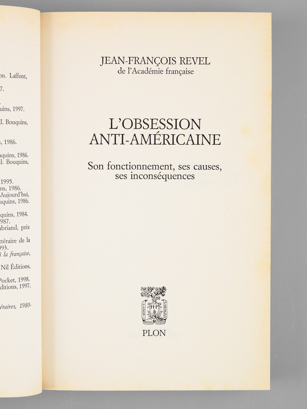 L'obsession anti-américaine - Son fonctionnement, ses causes, ses inconséquences [ Livre signé par l'auteur - Envoi à Maurice Druon ]