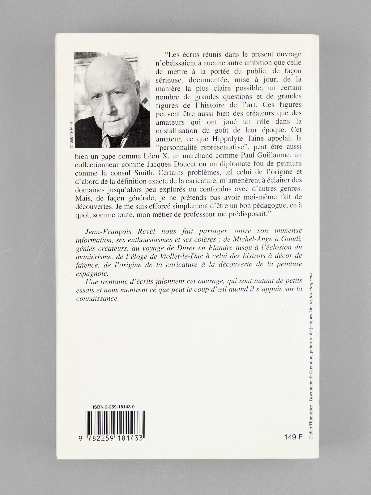 Commentaire : Bel envoi de l'auteur à Maurice Druon : 'À Maurice Druon, en hommage admiratif et sincère, en lui disant le plaisir que j'éprouve à l'idée d'avoir souvent, dans un proche avenir , l'occasion de le rencontrer.' Etat très satisfaisant (lég. rousseurs sur tr. sup., bon état par ailleurs). L'auteur et le dédicataire furent tous deux académiciens. Maurice Druon (1918-2009), auteur notamment de la célèbre saga historique des Rois maudits, avait été élu à l'Académie Française en 1968, et en devint le secrétaire perpétuel, de 1985 à 1999. Jean-François Revel, quant à lui, venait d'être élu (en 1997), ce qui explique la teneur de la dédicace . Une belle dédicace, à un dédicataire prestigieux