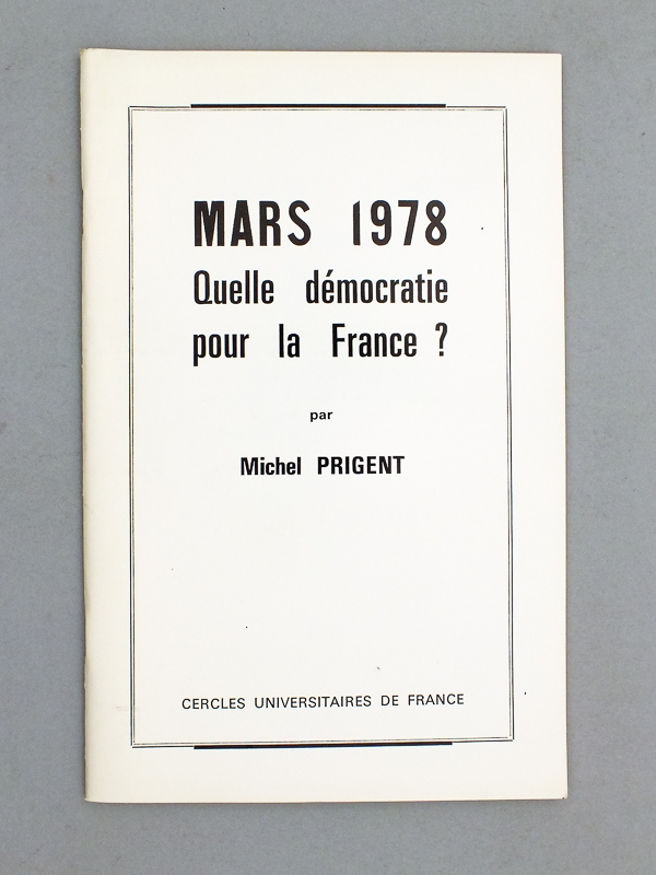 Mars 1978, quelle démocratie pour la France ? [ exemplaire dédicacé par l'auteur ] - Auteur: PRIGENT, Michel ; Cercles Universitaires de France - Année d'édition: 1978