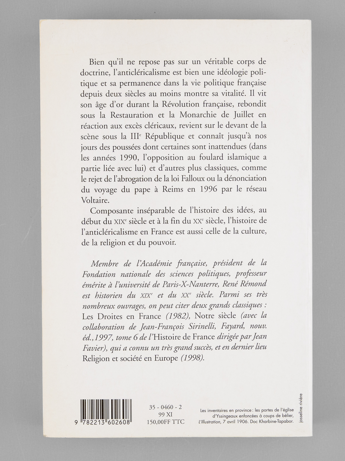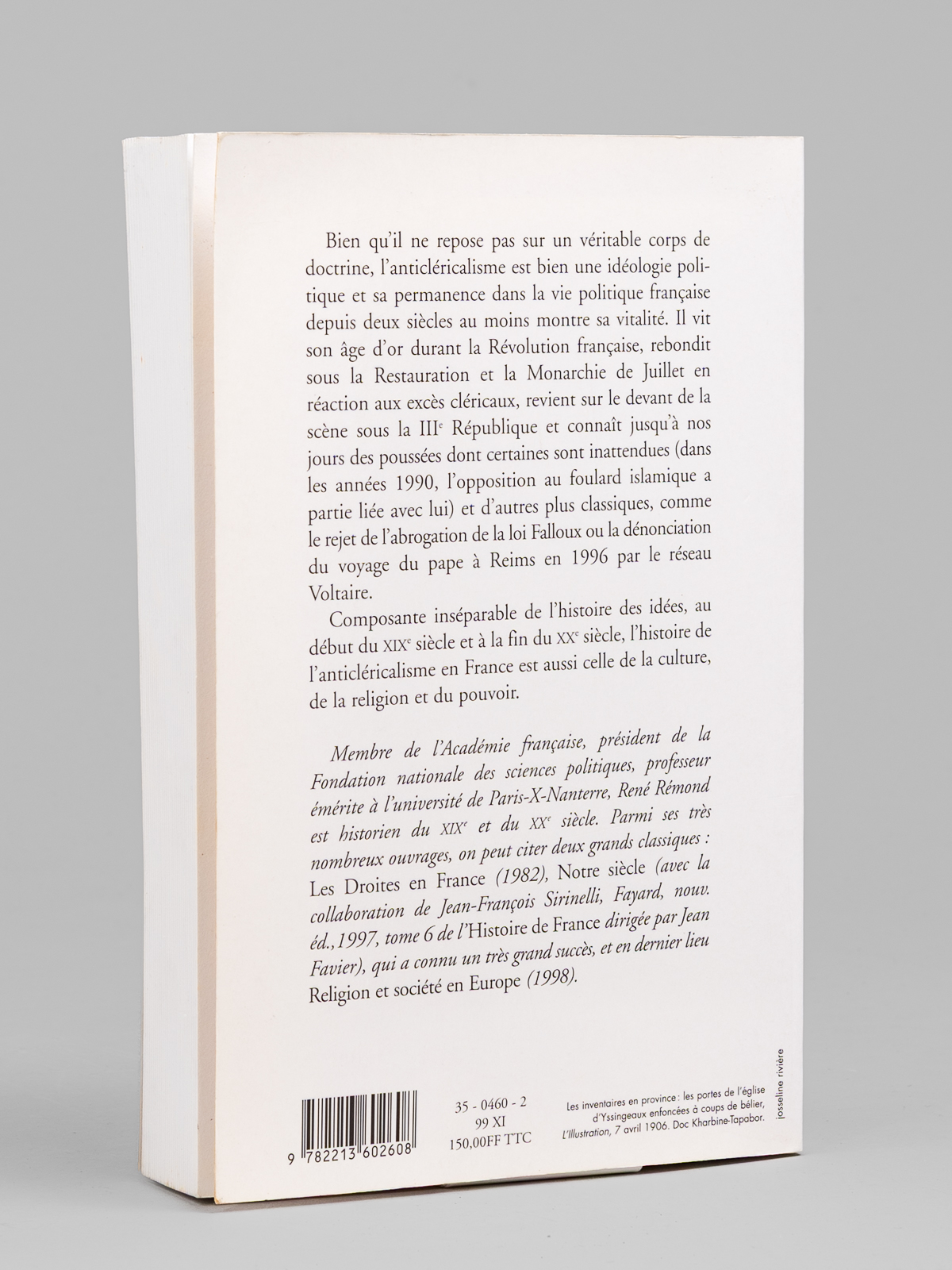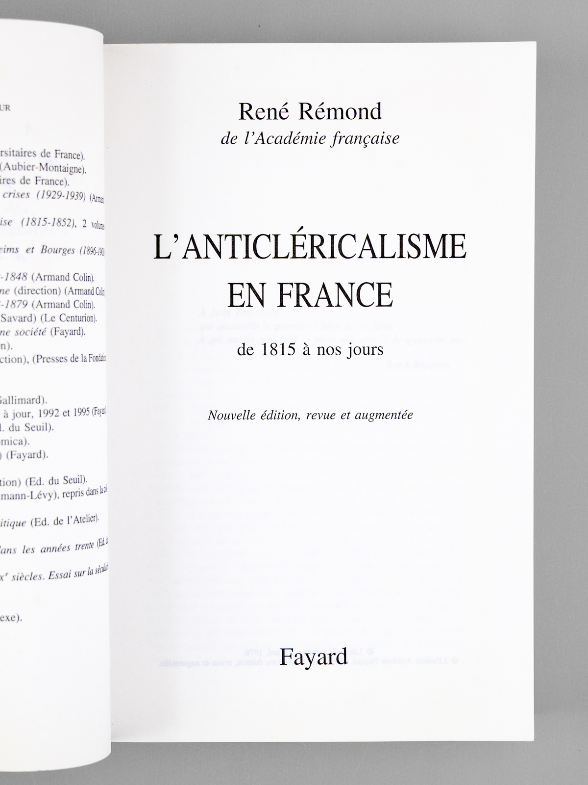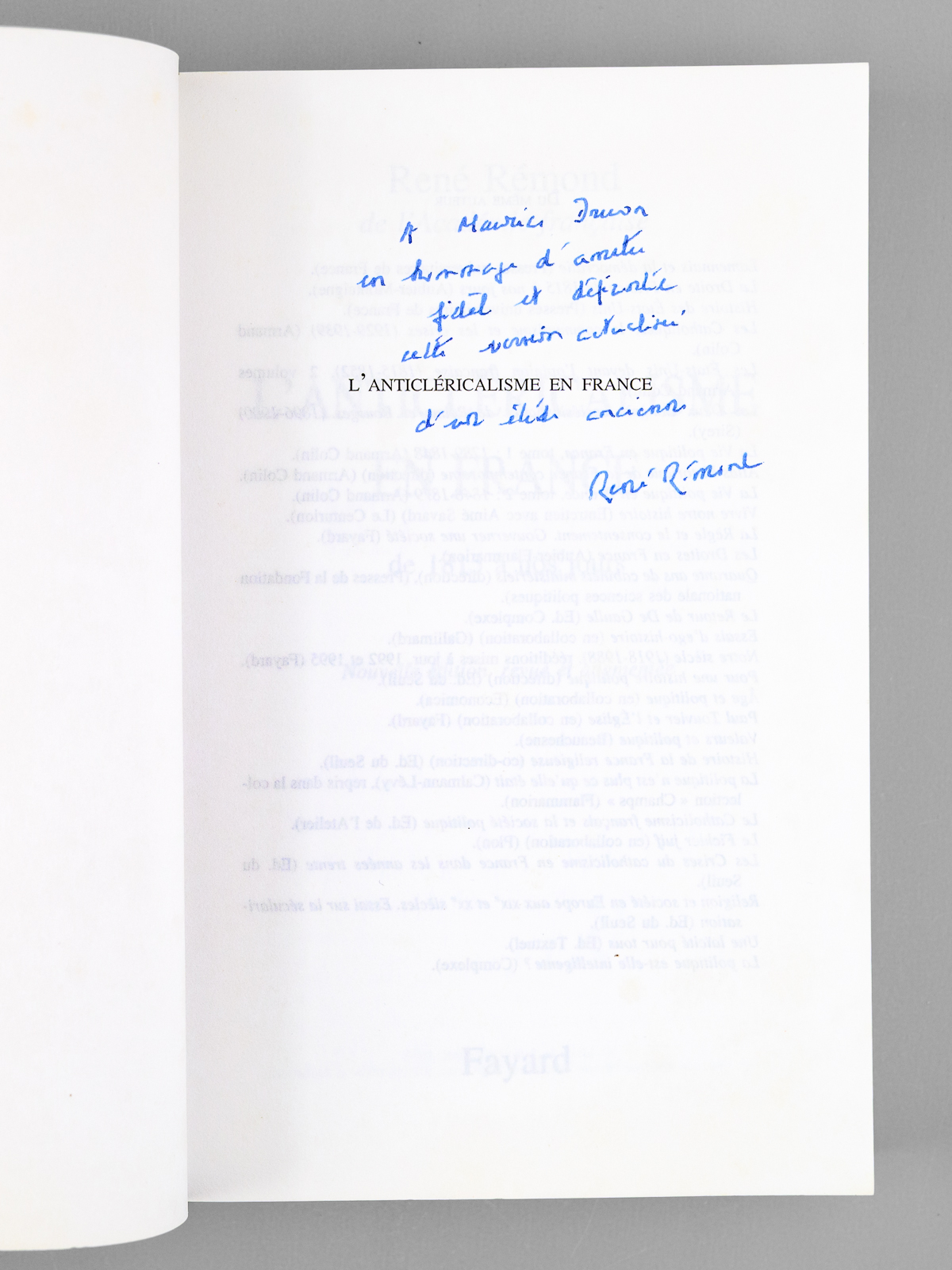 L'anticléricalisme en France, de 1815 à nos jours [ Livre signé par l'auteur - Envoi à Maurice Druon ] - Auteur: Rémond, René (1918-2007) - Année d'édition: 1998
