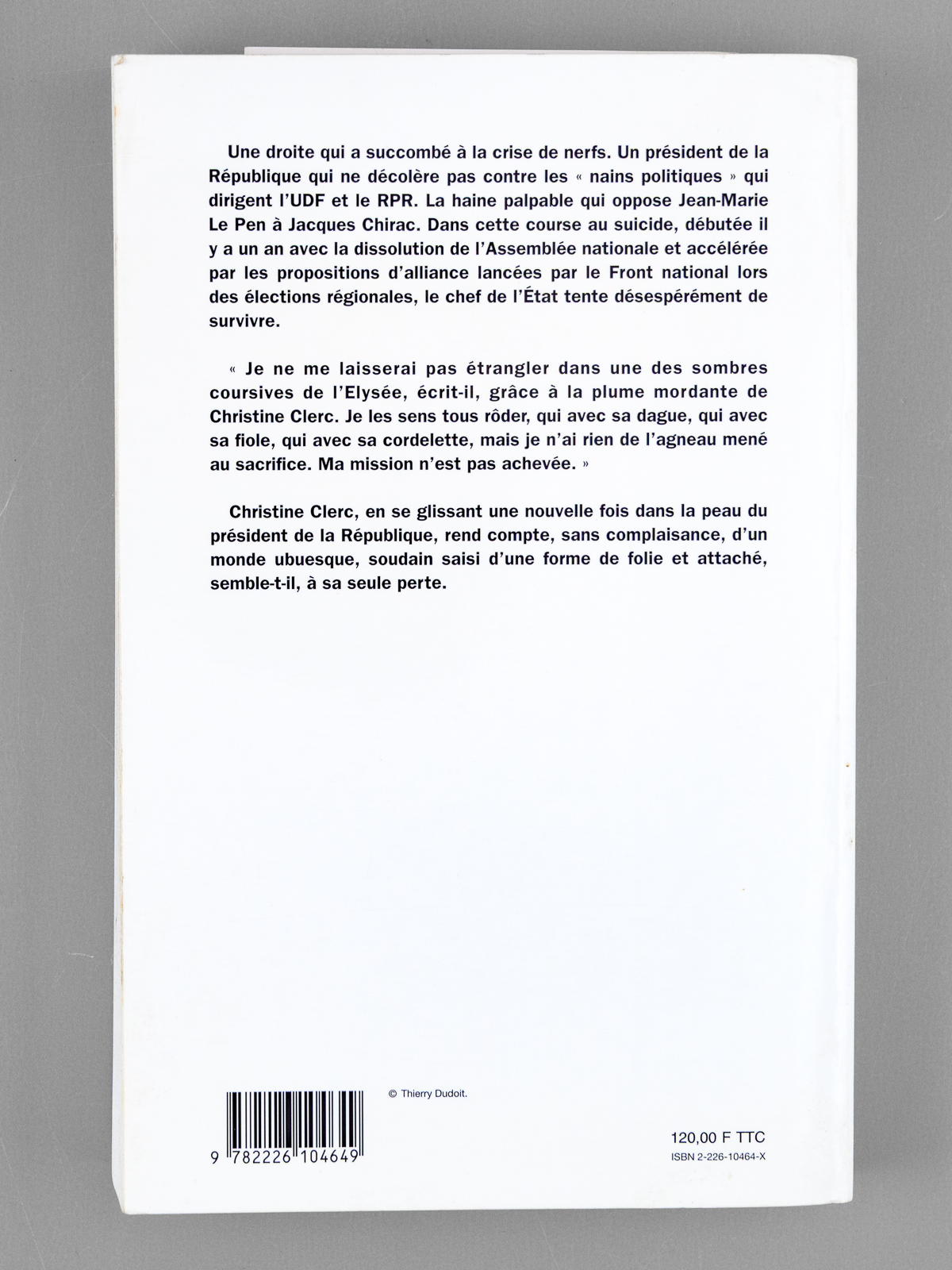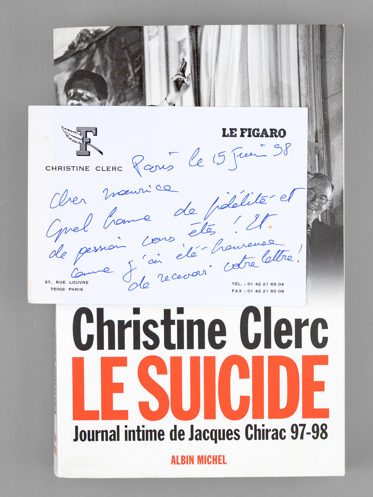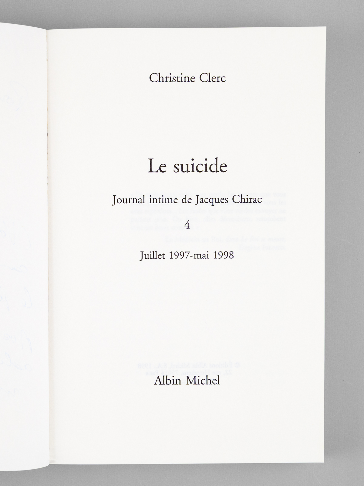 Le suicide. Journal intime de Jacques Chirac 4 - Juillet 1997 - mai 1998 [ Livre dédicacé par l'auteur à Maurice Druon ] - Auteur: CLERC, Christine - Année d'édition: 1998
