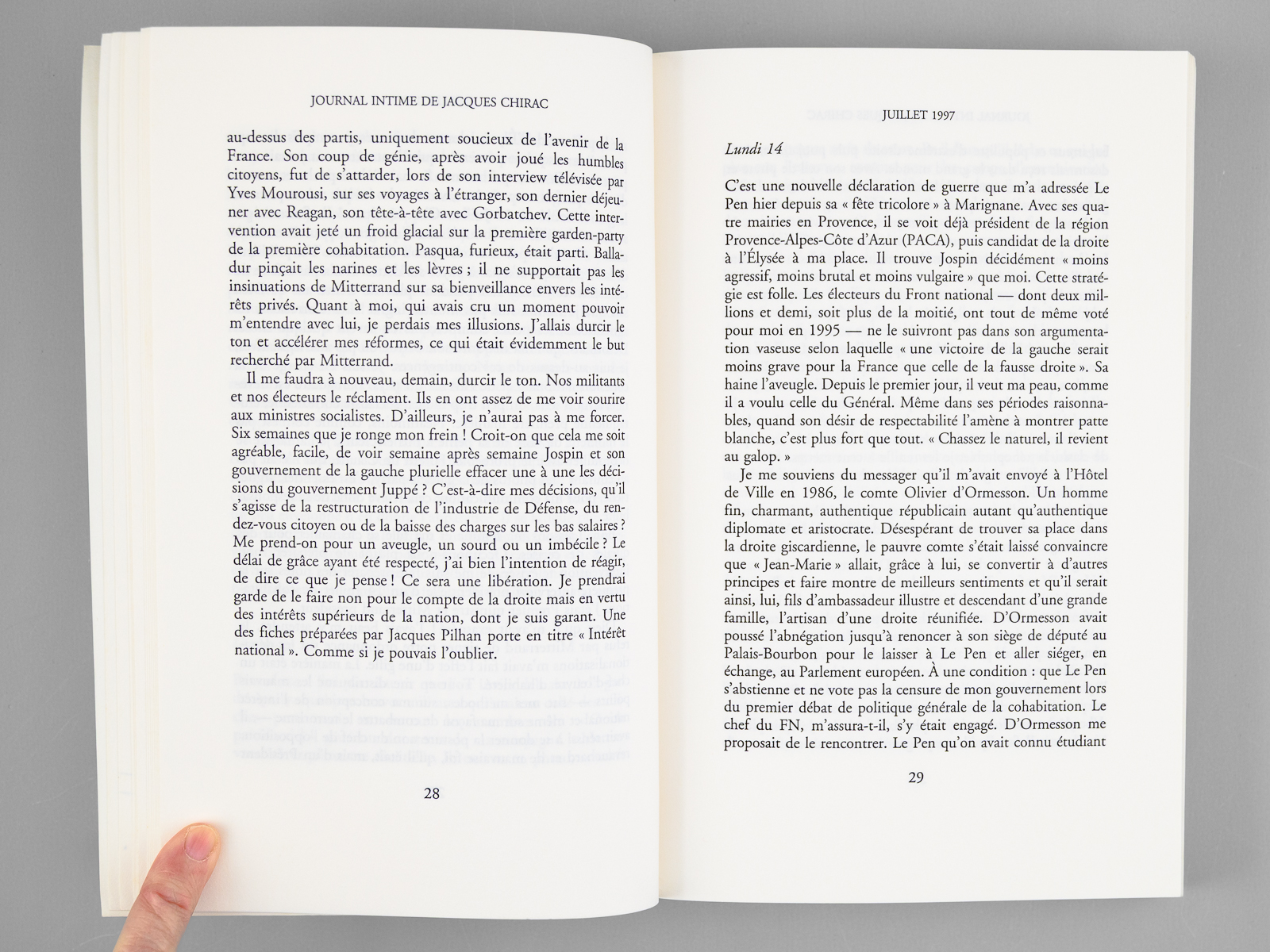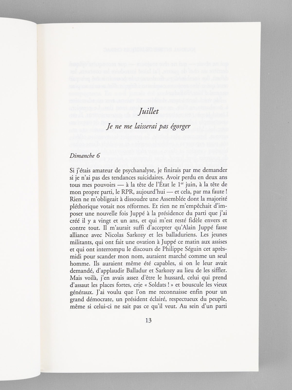 Le suicide. Journal intime de Jacques Chirac 4 - Juillet 1997 - mai 1998 [ Livre dédicacé par l'auteur à Maurice Druon ]