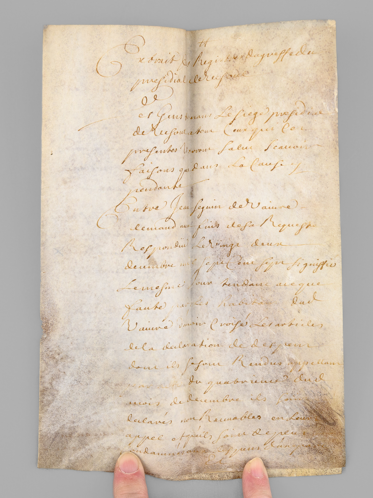 Les Excentricités du Langage. [ Acte judiciaire condamnant au dépens suite aux poursuites pour injures, Vesoul, juillet 1699 : ] 'Extrait des Registres du greffe du Bailliage Royal de Vesoul. Le Bailly d'Amont au Comté de Bourgogne à tous ceux qui ces prése