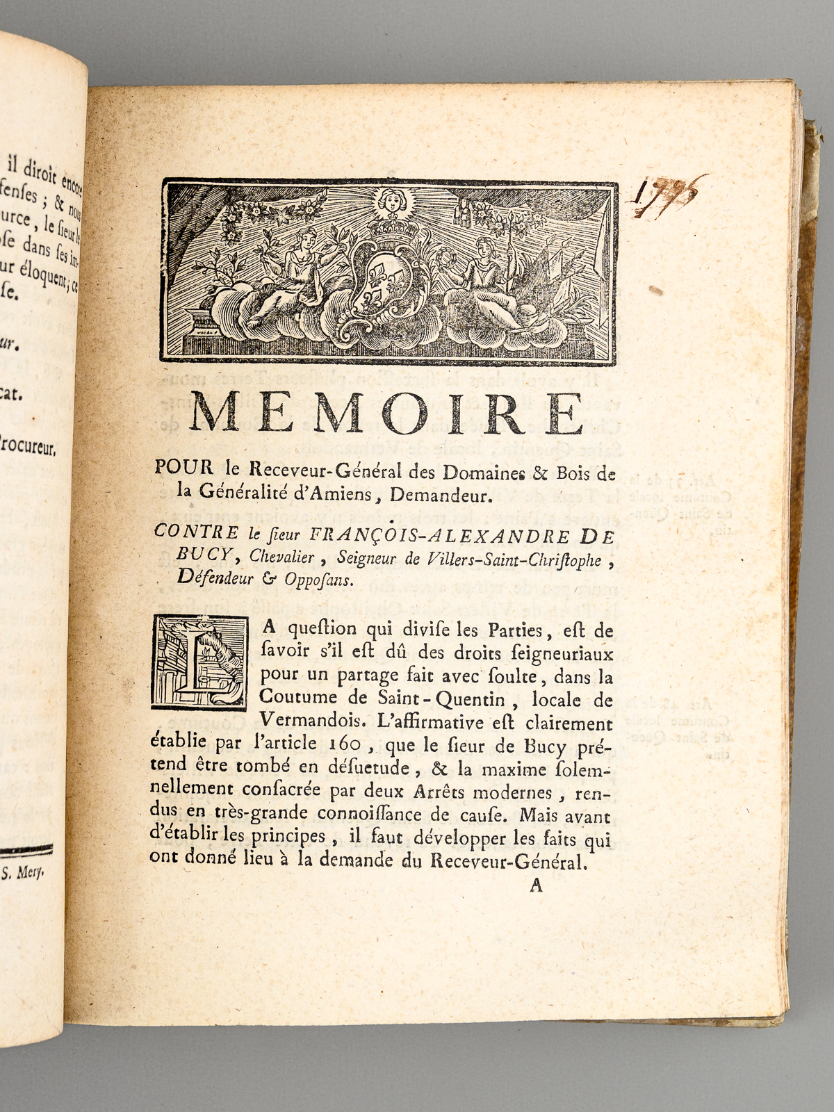 [ Recueil de 7 volumes d'Anciens Mémoires, Précis, Consultations relatifs à des affaires judiciaires dans le département de la Somme et régions limitrophes, de 1755 à 1813. Contient notamment : ] Tome I 1755-1773