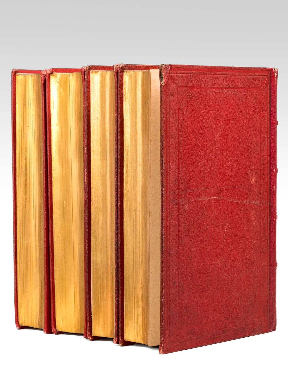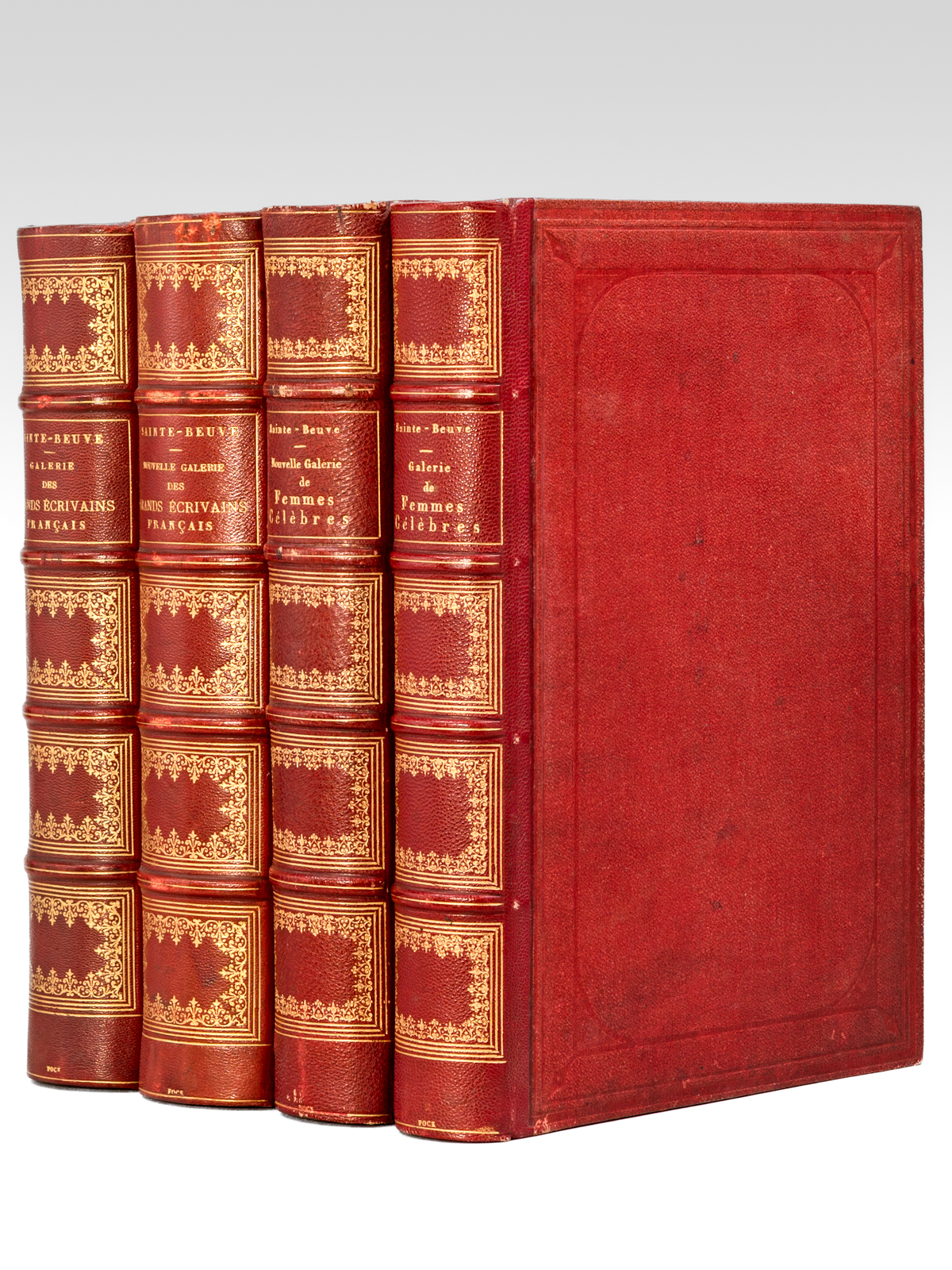 Illustrés de portraits gravés au burin, 4 vol. grand in-8 reliure uniforme demi-chagrin rouge, vert, dos à 4 nerfs dorés ornés, toutes tranches dorées,r eliures signées de Fock, Garnier Frères, Paris, 1878, 1881, 584 pp. et 2 ff. ; 648 pp. et 2 ff. ; 470 pp. et 2 ff. ; 564 pp. et 2 ff. : Rappel des titres : Galerie de Femmes Célèbres, tirées des Causeries du Lundi [ On joint : ] Nouvelle Galerie de Femmes Célèbres, tirées des Causeries du Lundi, des Portraits Littéraires, etc.