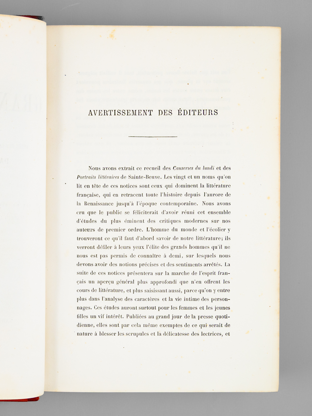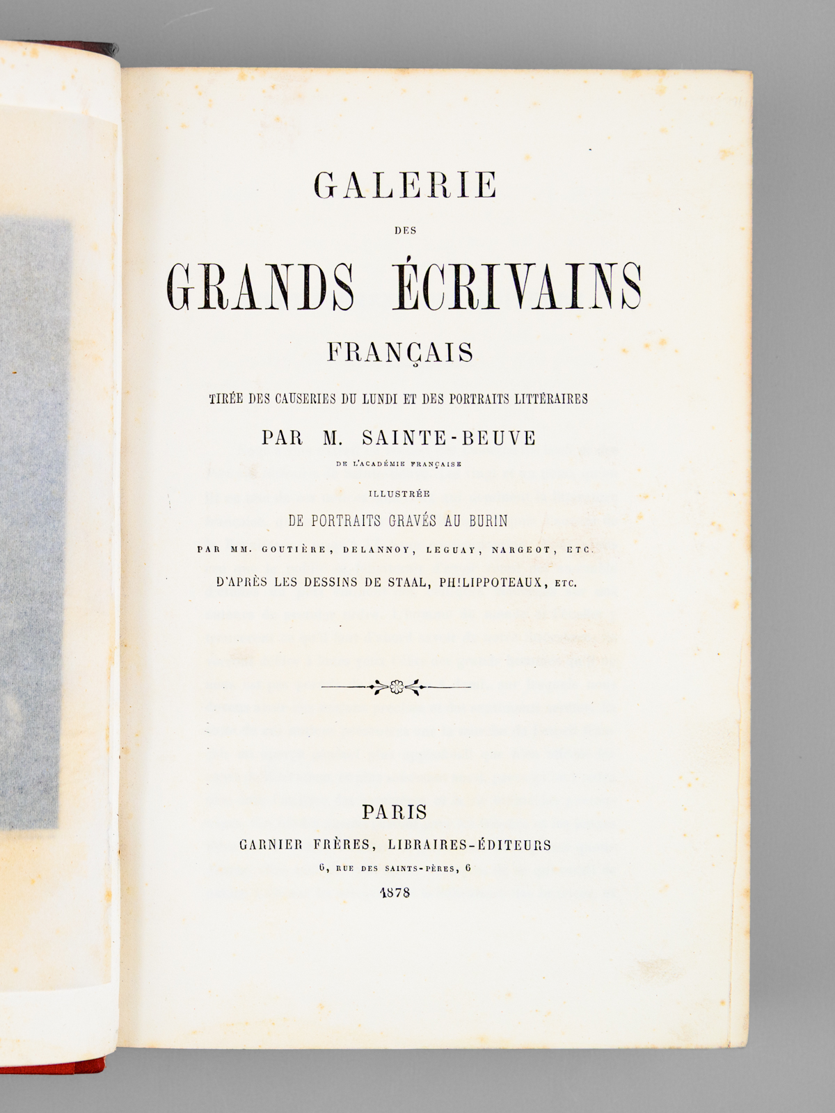 Galerie des Grands Ecrivains Français tirée des Causeries du Lundi et des Portraits Littéraires [ On joint : ] Nouvelle Galerie des Grands Ecrivains Français tirée des Causeries du Lundi et des Portraits Litté