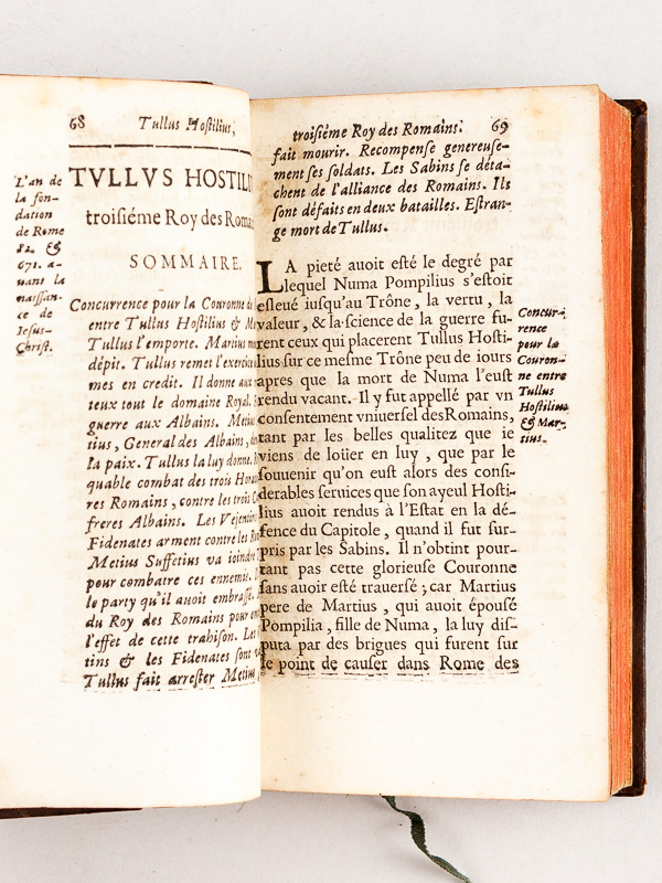 Commentaire : Etat très satisfaisant pour cet exemplaire de la réédition posthume de l'Abrégé chronologique de l'Histoire romaine, de Gilbert du Verdier, historiographe du Roi (manque à un feuillet du tome 7 affectant surtout les notes marginales, qq. petites fentes en mors en tête et en queue, bel exemplaire par ailleurs).