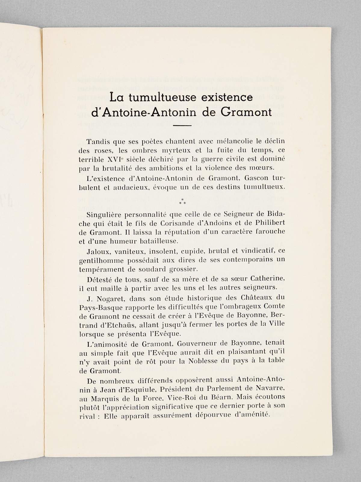 La tumultueuse existence d'Antoine-Antonin de Gramont [ Livre dédicacé ]