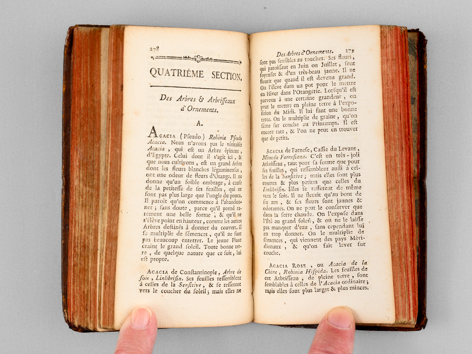 Nouvelle édition avec un Supplément Par M. De Grace, Censeur Royal, Amateur & Cultivateur, 1 vol. in-24 reliure de l'époque pleine basane marbrée, dos lisse orné, toutes tranches marbrées, Chez Eugène Onfroy, Libraire, Quai des Augustins, Paris, 1784, XXIV-408 pp.