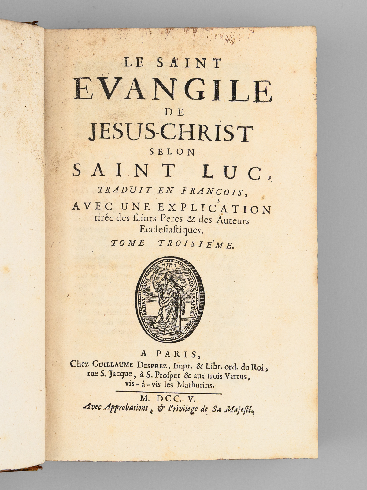 Le Saint Evangile de Jésus-Christ selon Saint Luc traduit en françois avec une Explication tirée des Saints Pères & des Auteurs Ecclésiastiques.