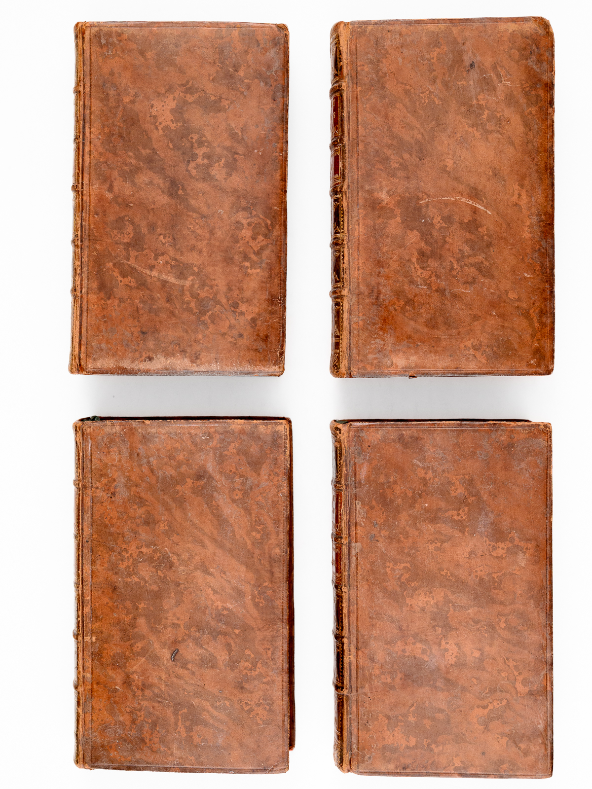 Commentaire : Joli exemplaire bien relié réunissant les 4 premiers tomes (sur 6) de la seconde édition, bien complet du frontispice et des 72 planches. Bon ensemble (4 tomes sur 6, coins un peu frottés, dos lég. frotté, petit frott. à qq. ff. en tête en fin du tome second, bel état par ailleurs).