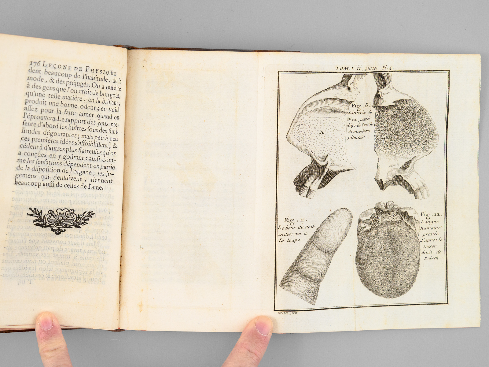 Seconde édition, 4 vol. in-12 reliure postérieure plein veau raciné, dos à 5 nerfs richement orné, Chez les Frères Guerin, Paris, 1745, 1748 (tome 4), 2 ff. (titre et avis au relieur), frontispice, lx-379 pp. avec 19 planches dépliantes hors texte ; 2 ff., 489 pp. et 1 f. n. ch. avec 20 planches dépliantes hors texte ; 2 ff., 512 pp. avec 19 planches dépliantes hors texte ; 2 ff., 535 pp. avec 14 planches dépliantes hors texte