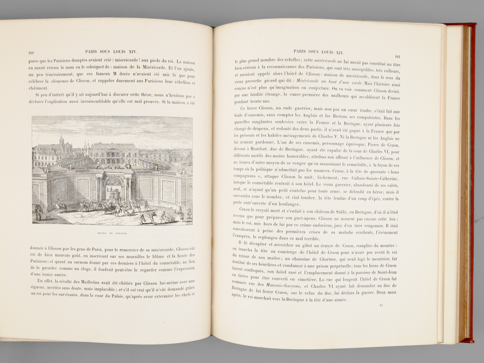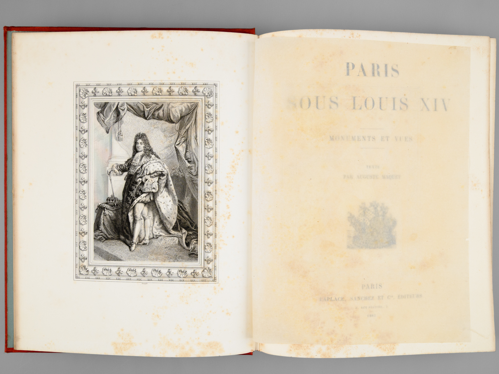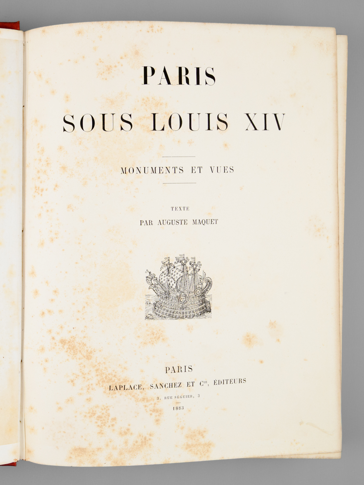 1 vol. in-4 cartonnage éditeur pleine percaline rouge et or richement ornée, toutes tranches dorées, Laplace, Sanchez et Cie, Paris, 1883, 2 ff. III-345 pp. Commentaire : Paris sous Louis XIV, racontée par le célèbre collaborateur d'Alexandre Dumas. On y retrouvera le Paris de 'Vingt Ans après' et du 'Vicomte de Bragelonne'. Bon état (qq. rouss., coins lég. frottés)
