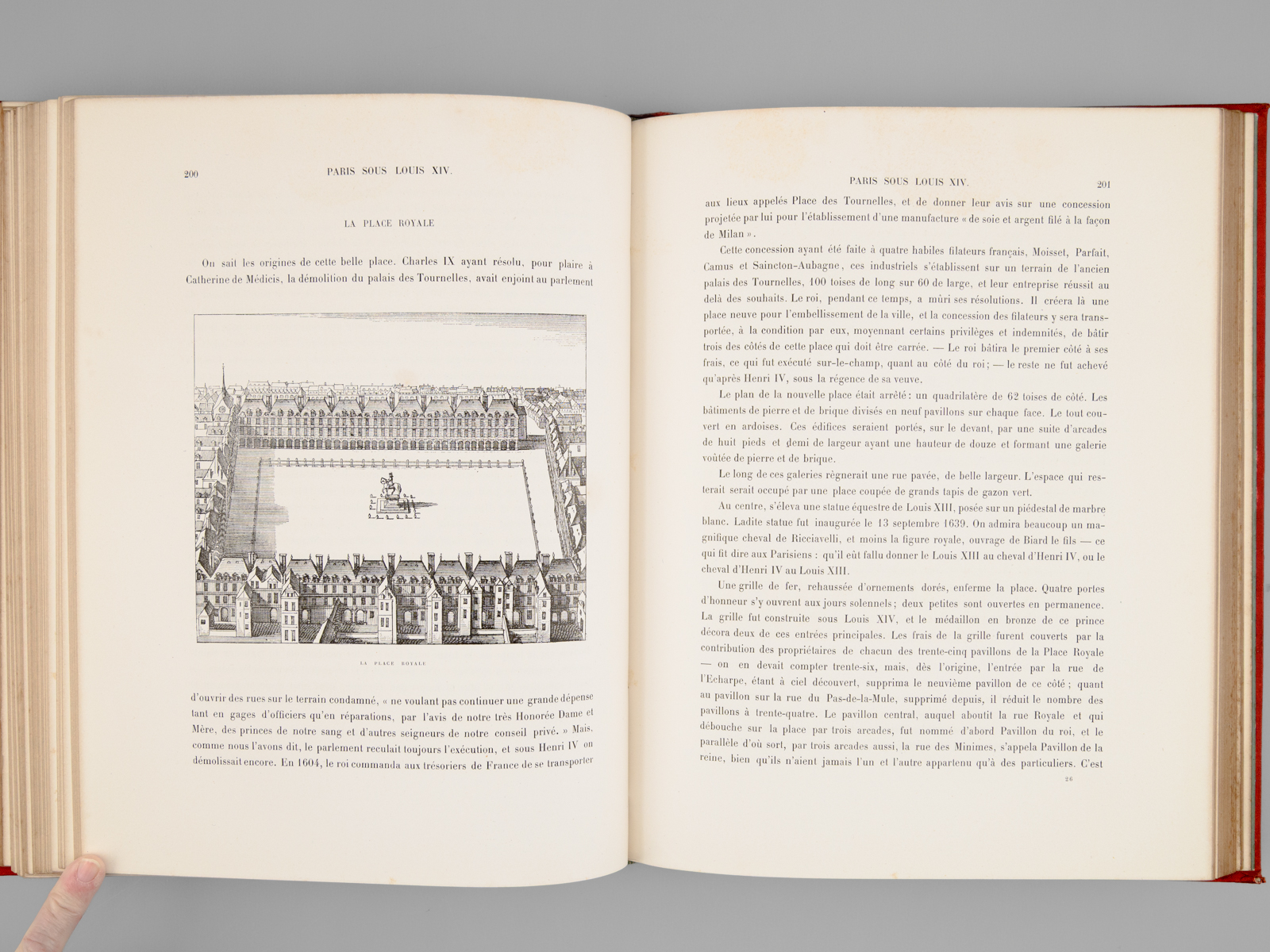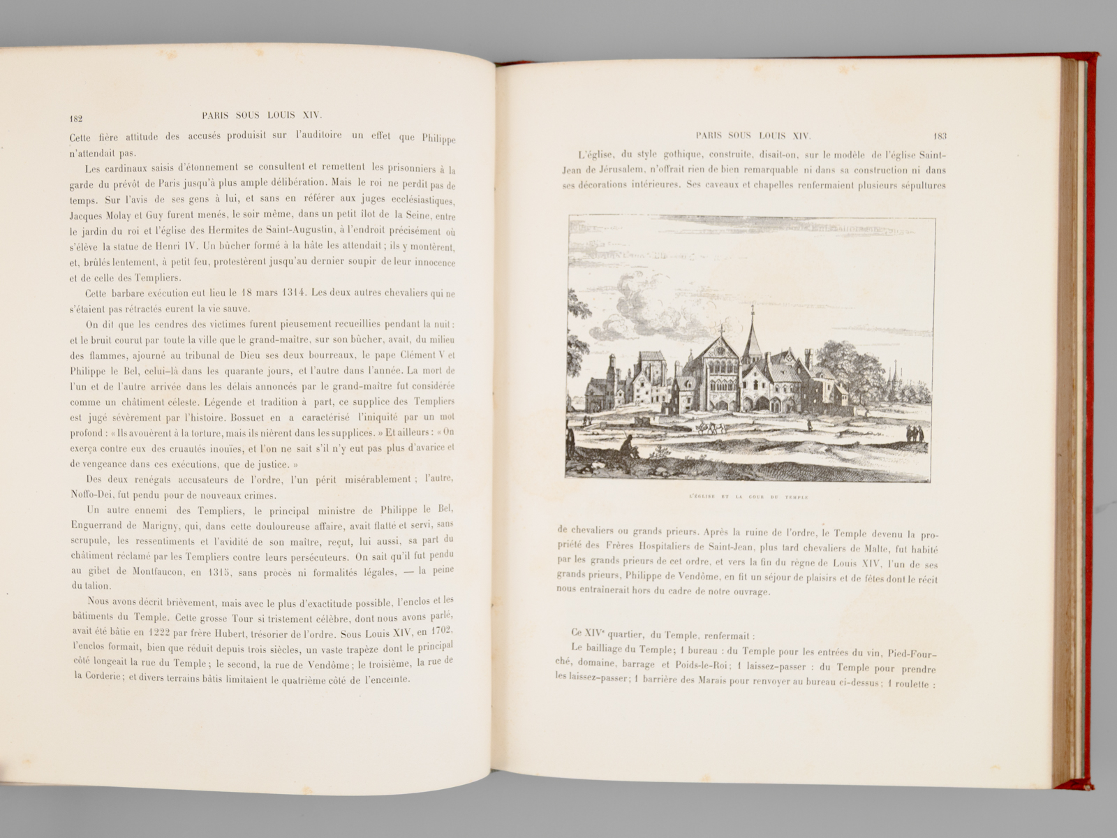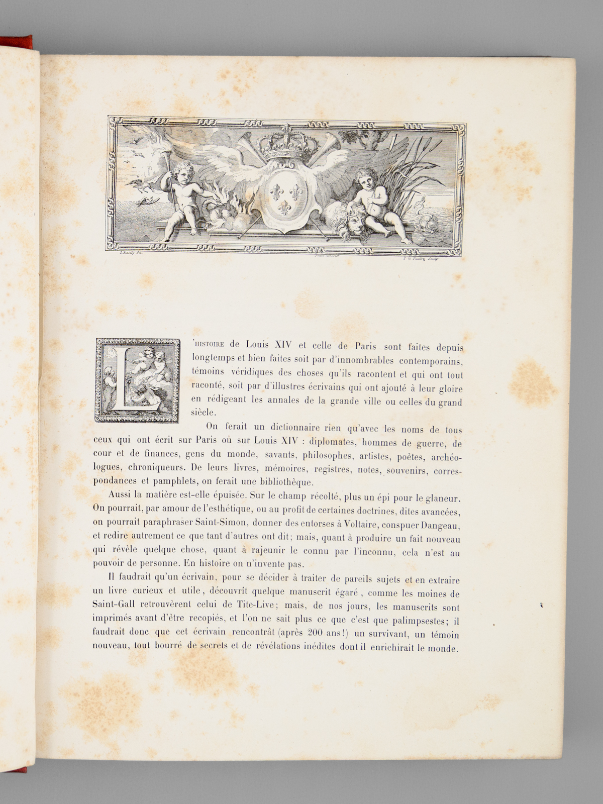1 vol. in-4 cartonnage éditeur pleine percaline rouge et or richement ornée, toutes tranches dorées, Laplace, Sanchez et Cie, Paris, 1883, 2 ff. III-345 pp. Commentaire : Paris sous Louis XIV, racontée par le célèbre collaborateur d'Alexandre Dumas. On y retrouvera le Paris de 'Vingt Ans après' et du 'Vicomte de Bragelonne'. Bon état (qq. rouss., coins lég. frottés)