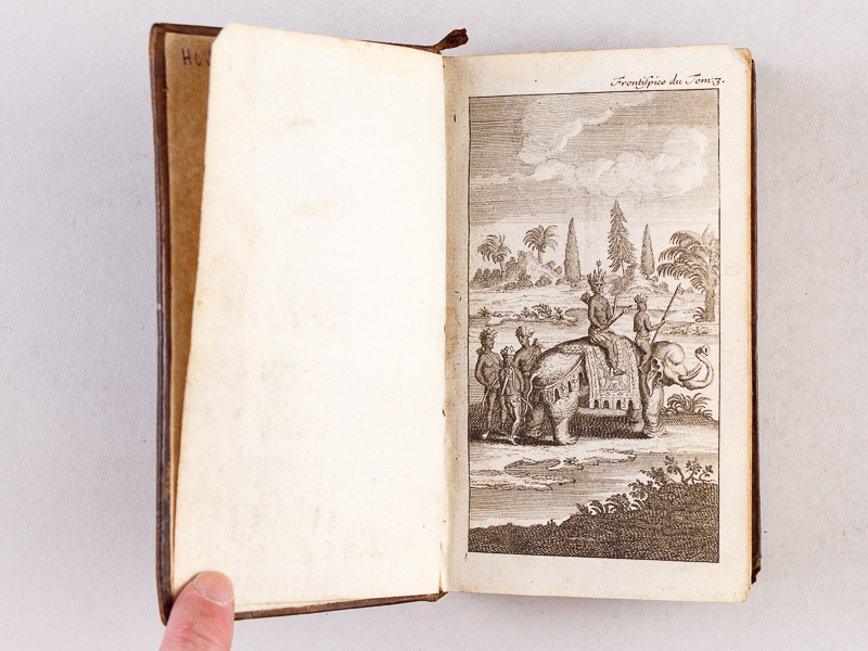 Commentaire : Ce tome 3, bien complet du frontispice et des 14 planches, contient notamment le 'Voyage des Hollandois autour du Monde, sous la conduite du Général Olivier de Noort, par le détroit de Magellan', le 'Voyage de Paul van Caerden aux Indes Orientales fait dans les années 1599, 1600, 1601 pour le compte de la Nouvelle Compagnie des Brabançons, formée à Amsterdam', la 'Relation du II Voyage de Jaques Van Neck, Amiral hollandois, au Indes Orientales', et 'Divers Mémoires touchant les Indes Orientales, du Commerce qui se fait en plusieurs endroits des Indes, avec la description de quelques Païs', 'Voiage de Deux Vaisseaux hollandois au Roiaume d'Achin, dans l'Isle de Sumatra, les années 1600 & 1601', 'Voiage de Cinq Vaisseaux hollandois aux Indes orientales, sous le commandement de l'amiral Wolphart, Harmansen, les années 1601, 1602 & 1603' avec une autre relation abrégée du voyage de Corneille de Veen. Etat très satisfaisant (reliure un peu frottée avec mq. en coiffe sup., mq. de papier en dernière garde volante, bon état par ailleurs, ex-libris contrecollé en page de titre : M. le Chevalier de Roquigny, chef de cohorte). Cordier, Sinica, 2341