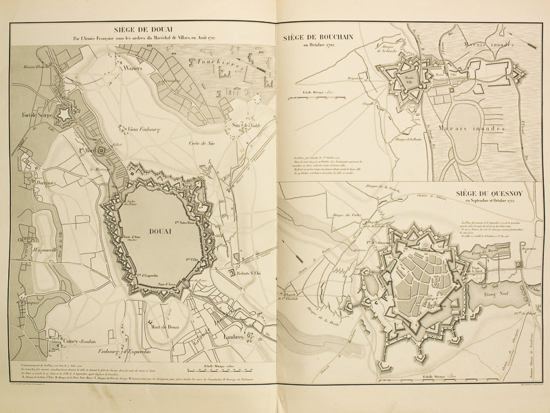 Siège de Douai par l'Armée Française sous les ordres du Maréchal de Villars en Août 1712 - Siège de Bouchan en Octobre 1712 - Siège du Quesnoy en Septembre et Octobre 1712 [ tiré de l'Atlas des M&eacu - Auteur: DE VAULT, Lieutenant Général de ; PELET, Général de Division (dir.) ; Collectif - Année d'édition: 1842