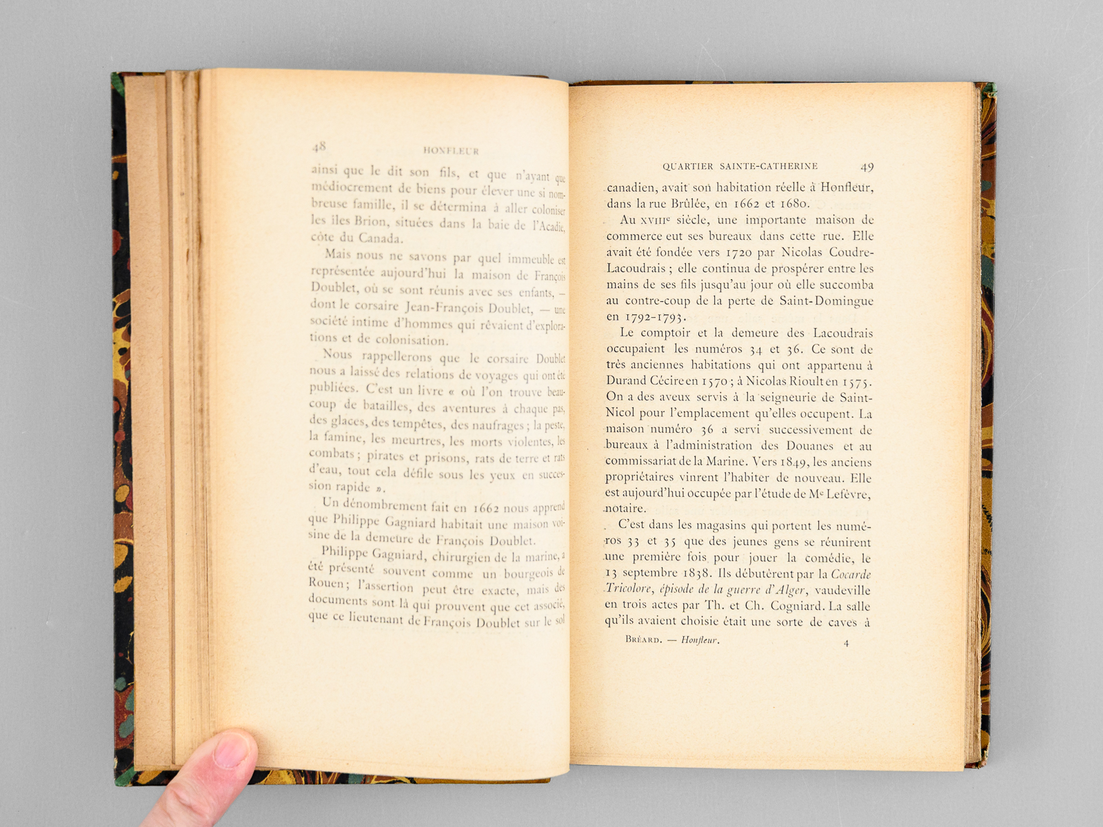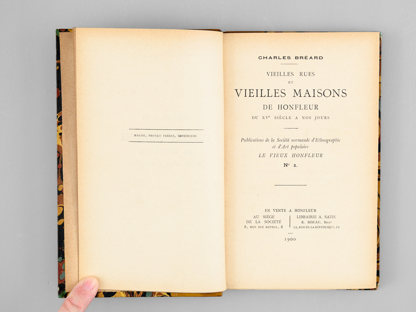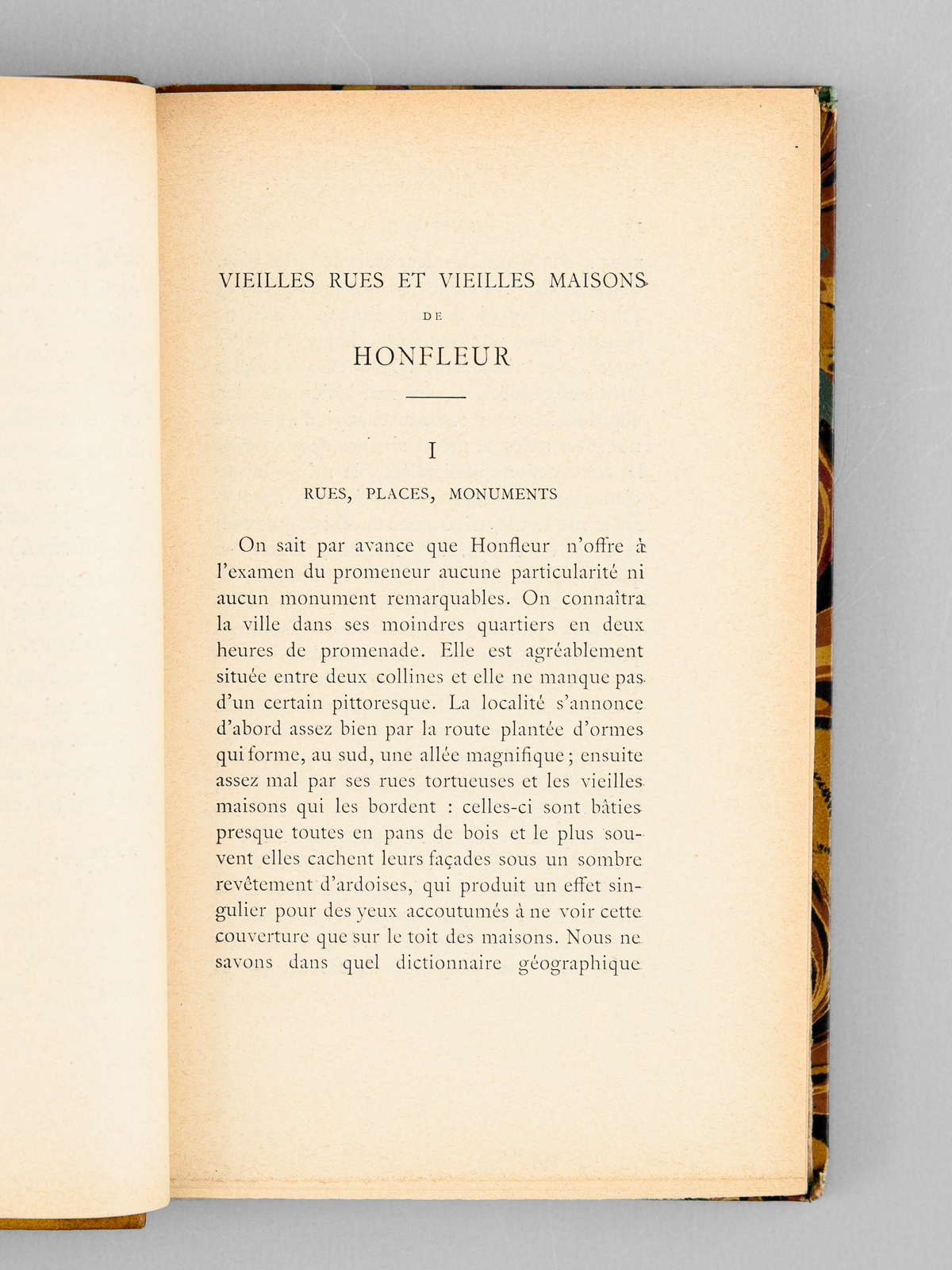 1 vol. in-12 reliure demi-chagrin havane, dos à 5 nerfs, Au Siège de la Société, Librairie A. Satie, R. Sescau, Honfleur, 1900, 2 ff., 350 pp. Commentaire : Edition originale peu commune. Etat très satisfaisant (dos lég. frotté avec petite usure en coiffe sup., accroc sans mq. à 2 ff., bon état par ailleurs).