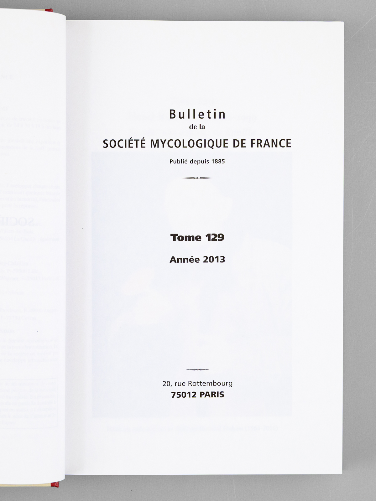 1 vol. in-8 cartonnage éditeur illustré, Bulletin de la Société Mycologique de France. Tome 129 Année 2013, 463 pp. Commentaire : Bon état (ex-libris ms.)