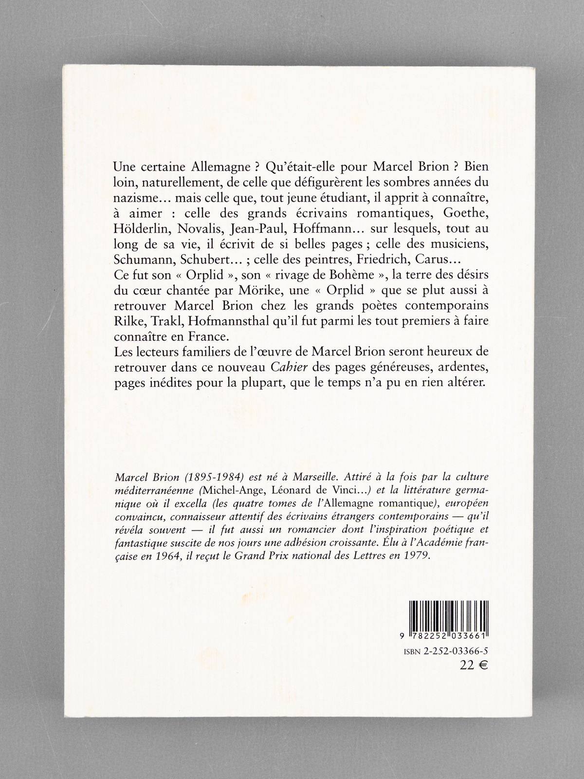 Cahiers Marcel Brion (4 Tomes en 3 volumes - Complet) Tome I : Mémoires d'une Vie Incertaine ; Tomes II-III : Suite Fantastique ; Tome IV : Orplid ou Une certaine idée de l'Allemagne