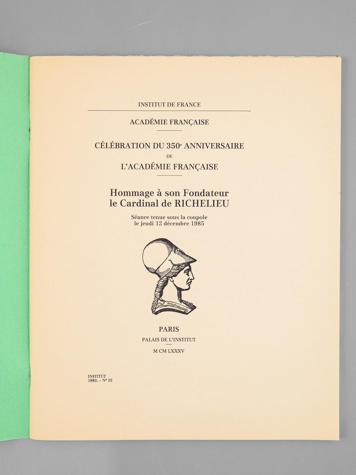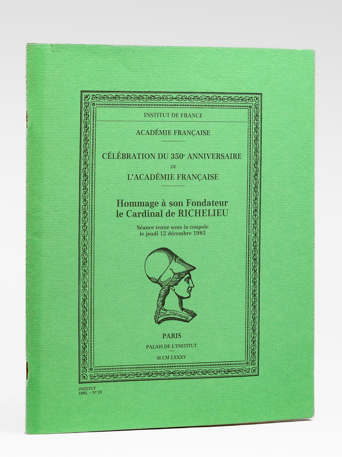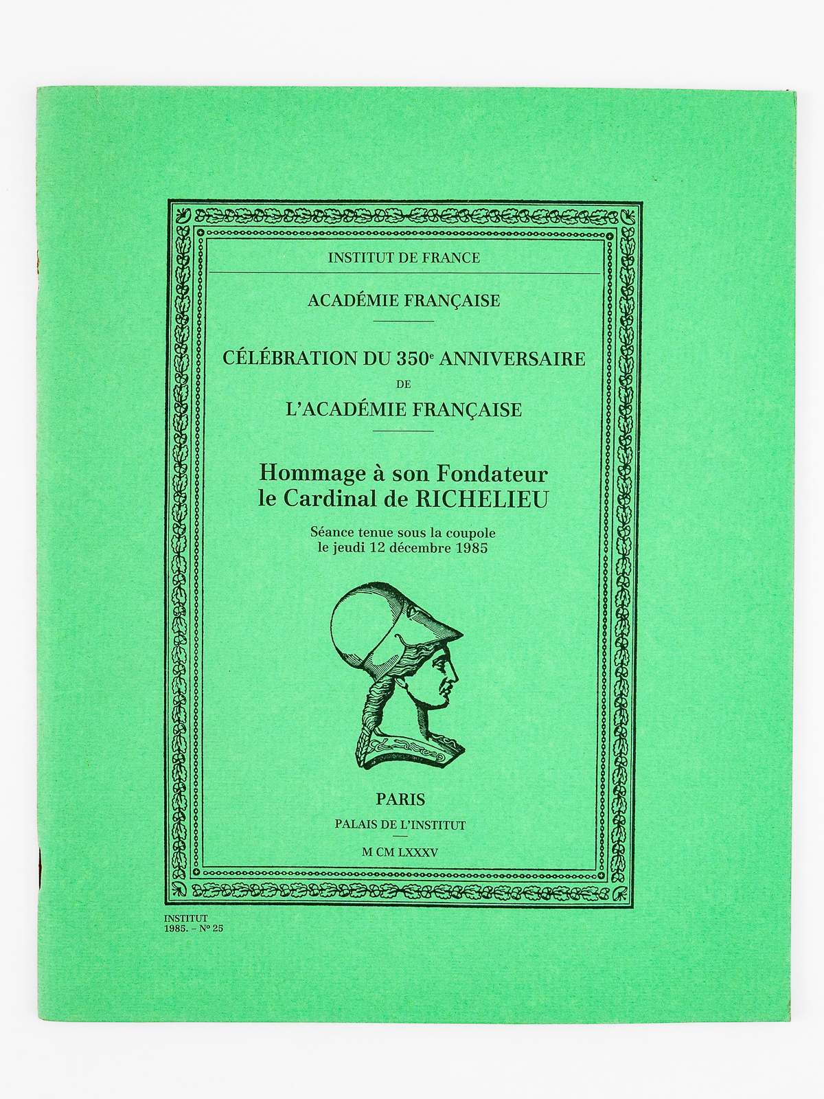 1 vol. in-4 br., Institut de France, Académie Française, Palais de l'Institut, Paris, 1985, 38 pp.