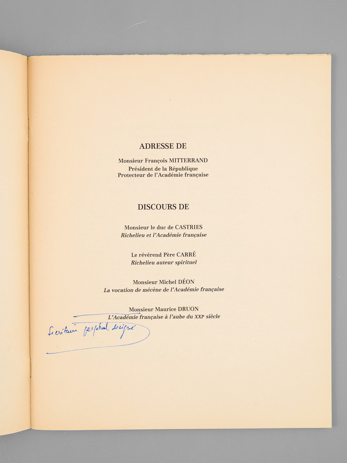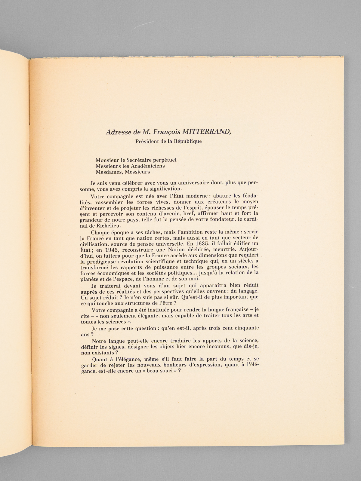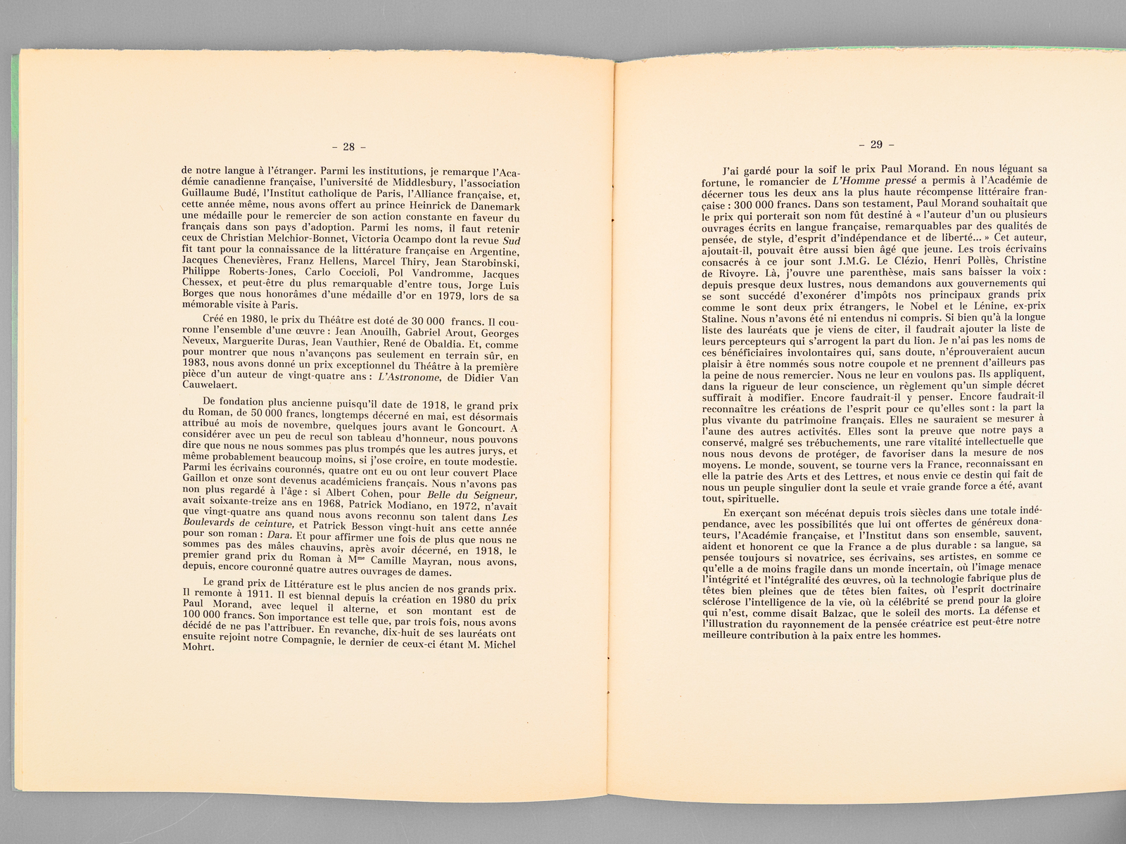 1 vol. in-4 br., Institut de France, Académie Française, Palais de l'Institut, Paris, 1985, 38 pp.