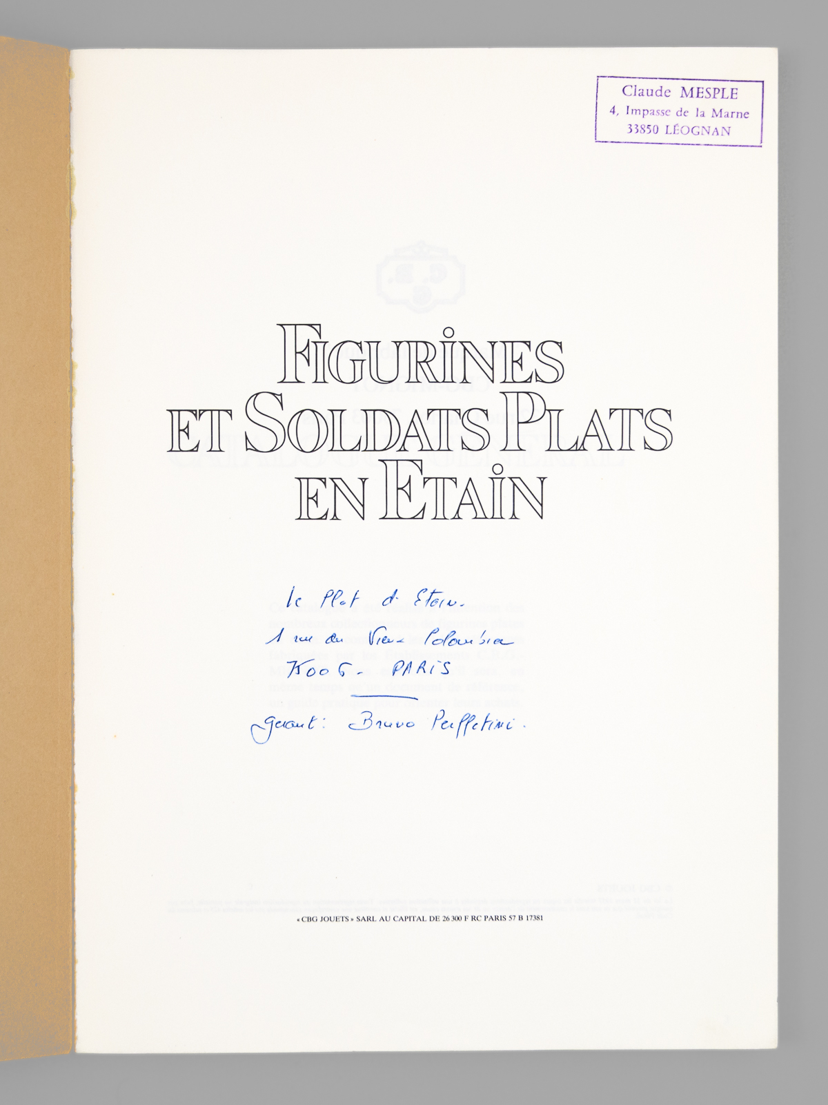 Commentaire : Etat très satisfaisant (annot. ms. en première et dernière page, très bon état par ailleurs). CBG Mignot, fondé en 1825 à Paris, est une entreprise artisanale française réputée de fabrication de soldats de plomb. Peu courant.