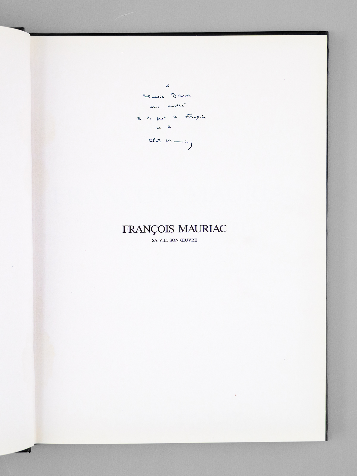 François Mauriac, sa Vie, son Oeuvre [ Livre dédicacé par l'auteur à Maurice Druon ]